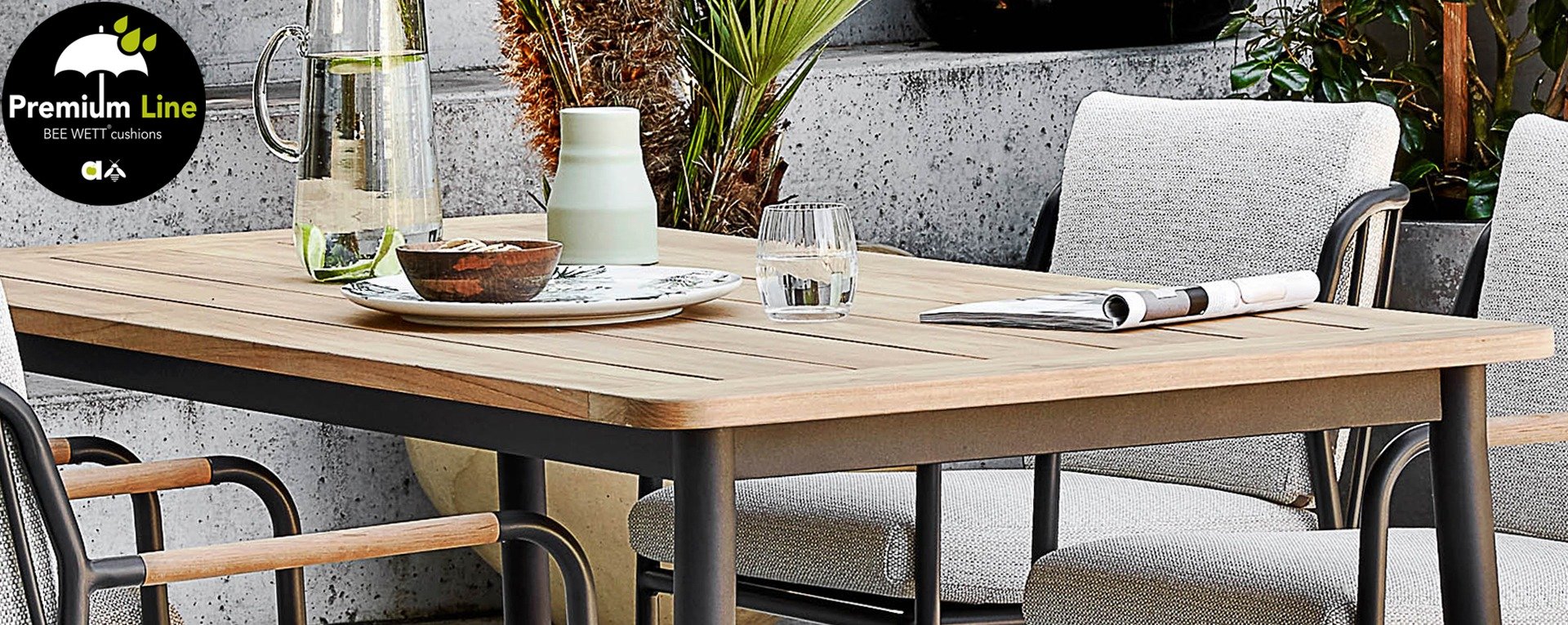 Neben der Apple Bee Elle Rope Loungegruppe haben wir diese Kollektion auch als Apple Bee Elle Rope Dining-Variante herausgebracht.