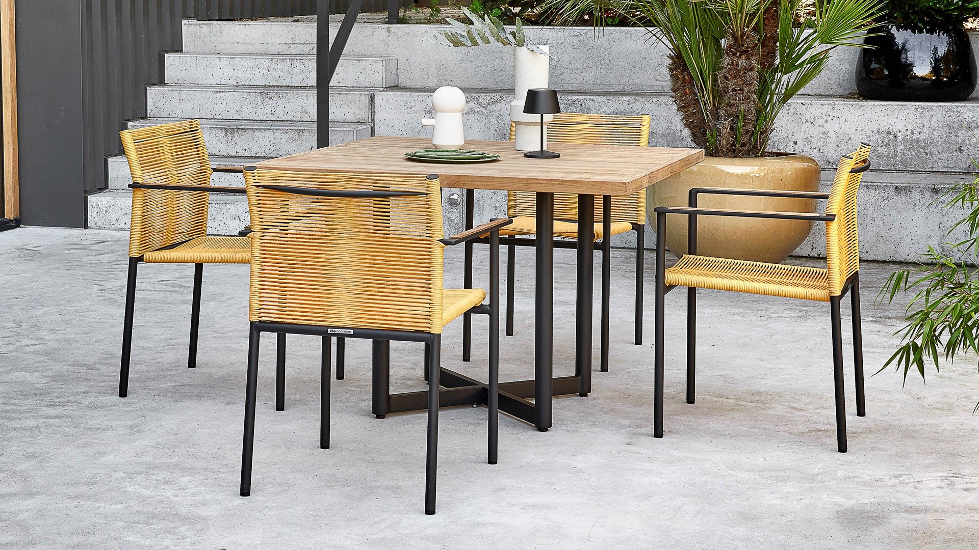 Der Apple Bee Jakarta Dining ist aus hochwertigem Seil gefertigt. Er wurde speziell für den Außenbereich entwickelt und ist auch ohne Sitzkissen äußerst bequem. Erhältlich ist er in vier verschiedenen Farben: Lemon, Black, Grey und Olive. Der Esszimmerstuhl Apple Bee Jakarta ist zudem stapelbar und daher besonders praktisch.