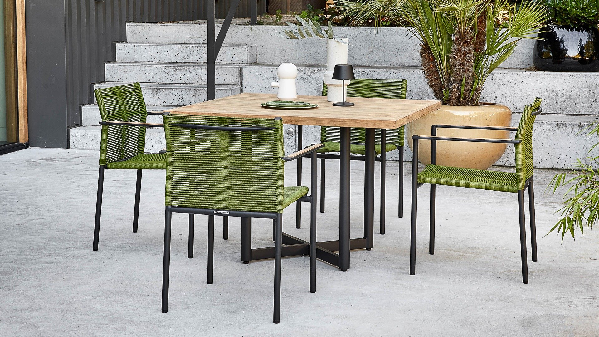 Der Apple Bee Jakarta Dining ist aus hochwertigem Seil gefertigt. Er wurde speziell für den Außenbereich entwickelt und ist auch ohne Sitzkissen äußerst bequem. Erhältlich ist er in vier verschiedenen Farben: Lemon, Black, Grey und Olive. Der Esszimmerstuhl Apple Bee Jakarta ist zudem stapelbar und daher besonders praktisch.