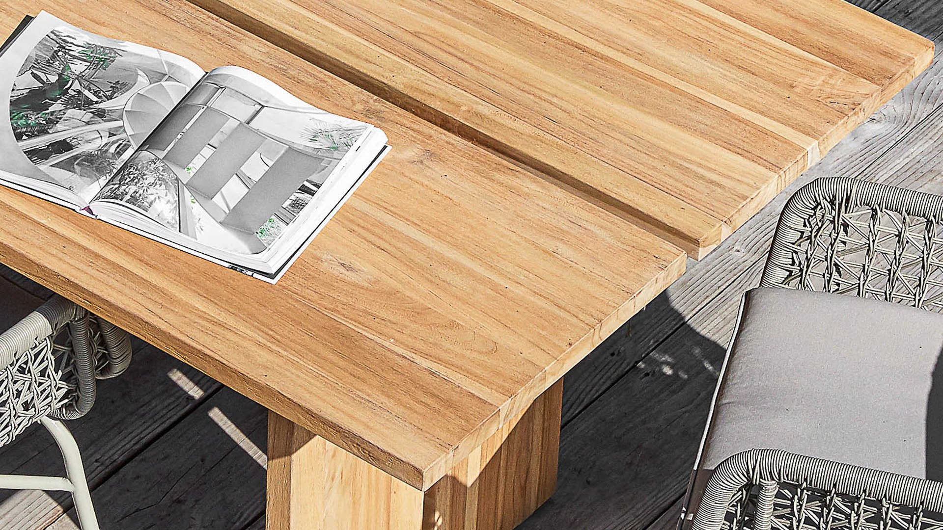 Der Joie de Vivre Gartentisch ist in 2 Längen erhältlich: 250cm und 200cm. Der Tisch besteht aus dickem zertifiziertem Teakholz.