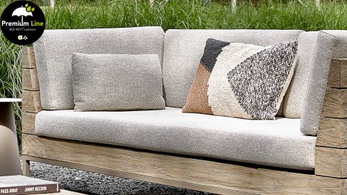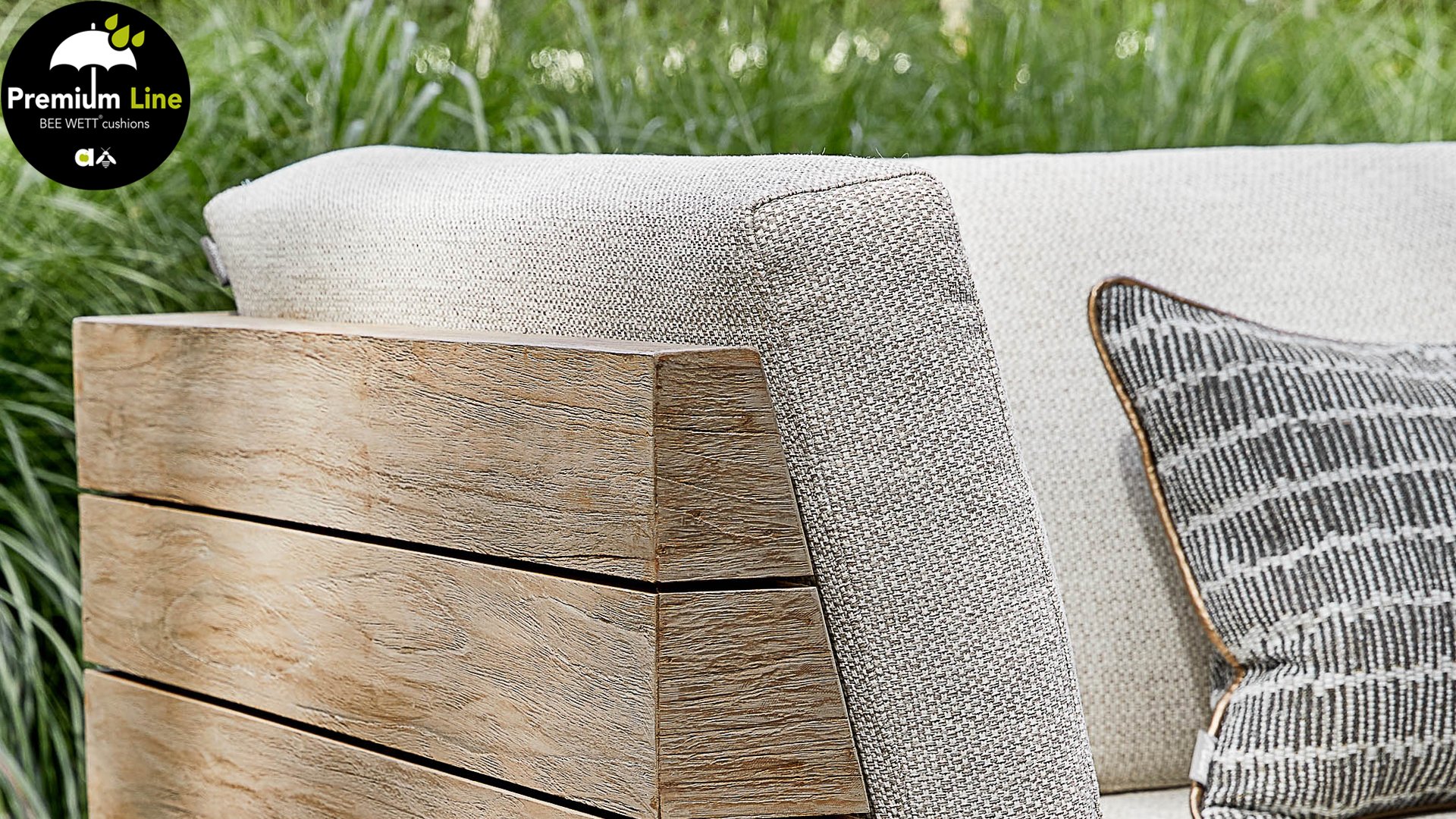 Die Apple Bee Serie Long Island ist zeitlos. Aus robusten Teakholzbalken gefertigt, bleibt dieses Möbel nicht unbemerkt. Das auf dem Teakholz aufgetragene Coastal-Finish verleiht zusätzliche einen sehr stilvollen Charakter und das schlanke Aluminiumgestell verfeinert die Konstruktion. Helle Polster – mit Bee-Wett®-Technologie – harmonieren mit Holz und Metall.