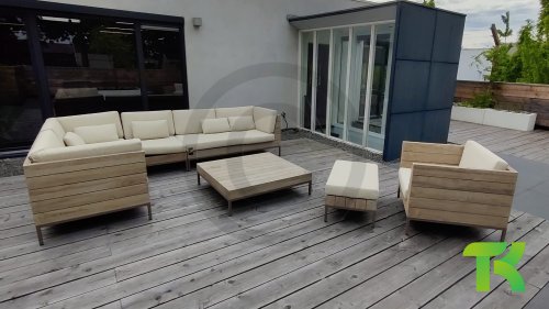 Robuste Teakholz Balken, zusammen geschmolzen in einem Stück zu einem zeitlosen Lounge Möbelstück. Die Applebee Long Islands bleibt sicher nicht unbemerkt in dem Garten oder auf der Terasse, in welcher Aufstellung dann auchimmer! Das auf dem Teakholz angebrachte Coastal -Finish verleiht diesem Set einen sehr stilvollen Charakter. Die schmalen Spalten zwischen den teakhölzernen Latten sorgen für die schönen, modernen Linien, die über das Möbel laufen. Das schlanke Aluminiumgestell an der Unterseite des Loungesets sorgt für einen Kontakt zur robusten Oberseite. Diese Applebee Long Island Lounge ist auch lieferbar in der Farbe Antique-Finish!