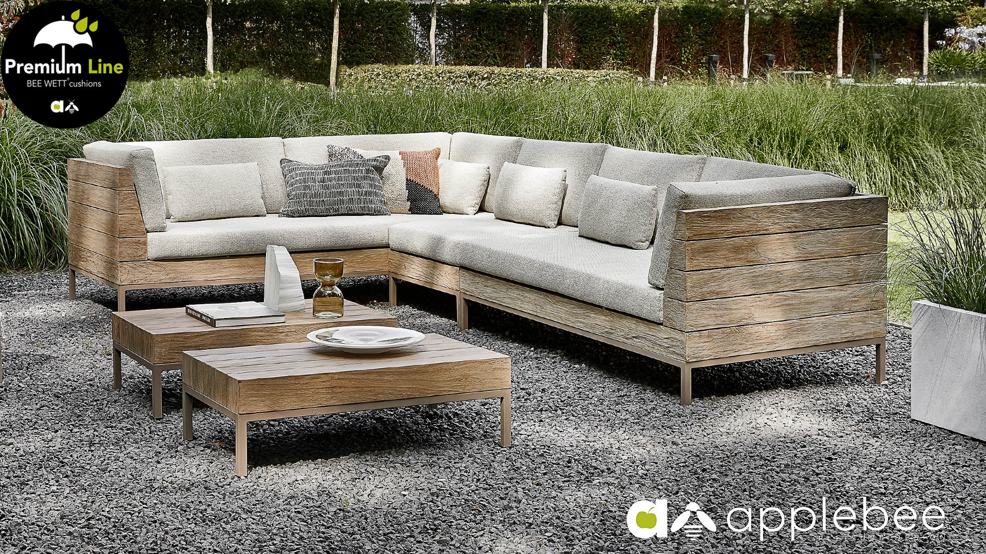 AppleBee Bee Wett sind spezielle wetterfeste Kissen die natürlich draußen liegen bleiben können. Die abnehmbaren Hüllen werden aus den besten möglichen Stoffen hergestellt und sind alle waschbar auf 30°C. Der Stoff ist zusätzlich wasserabstoßend und garantiert UV-beständig. Eine offenes Gewebe an der Unterseite der Kissen sorgt für eine perfekte Drainage. Der Vorteil, dass die Bee Wett Kissen und Polster unglaublich viel schneller trocknen als vergleichbare andere Kissen. Das Stoff hat eine gute Beständigkeit gegen Verfaulen und Stockflecken und darüber hinaus UV-beständig, weich, komfortabel und feuchtigkeitsabstoßend ist. Die Polster sind ausziehbar und waschbar.