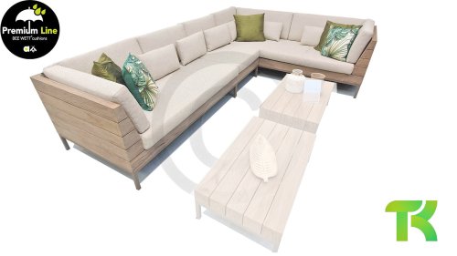 Die Apple Bee Long Island Lounge ist modular und geeignet für große und kleine Konfigurationen. Das Teakholz ist mit einer Coastal-Farbfinish behandelt. Die klaren Linien sind charakteristisch für das Aussehen dieses schönen Sets. Der grob gewebte Stoff verleiht dem Set ein luxuriöses Aussehen und bringt eine Strandatmosphäre in Ihren Garten!