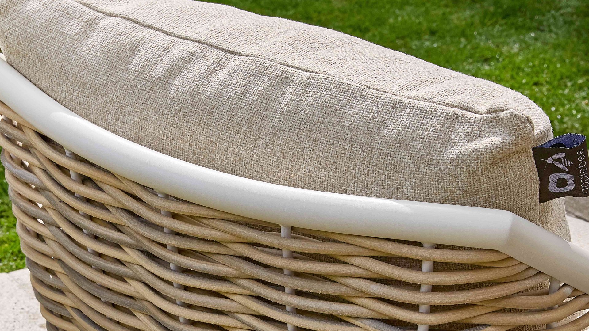 Apple Bee zeichnet sich durch die Verwendung des speziellen Biculair®-Geflechts aus, das ursprünglich für den professionellen Einsatz im Gastgewerbe entwickelt wurde. Dieses Biculair®-Geflecht ist eine naturgetreue und nachhaltige Alternative zu Rattan. Die äußerst strapazierfähige synthetische Rattanfaser (HDPE) ist absolut wetterfest, farbecht, recycelbar und somit eine umweltfreundliche Wahl. Aussehen und Funktionalität der Möbel bleiben von den europäischen Witterungsbedingungen unbeeinträchtigt, und die Farben behalten ihre natürliche Leuchtkraft. Die überlegene Qualität dieses Geflechts, bestätigt von der Niederländischen Organisation für Angewandte Naturwissenschaftliche Forschung (TNO), zeigt sich deutlich im Vergleich zu anderen vergleichbaren Materialien.