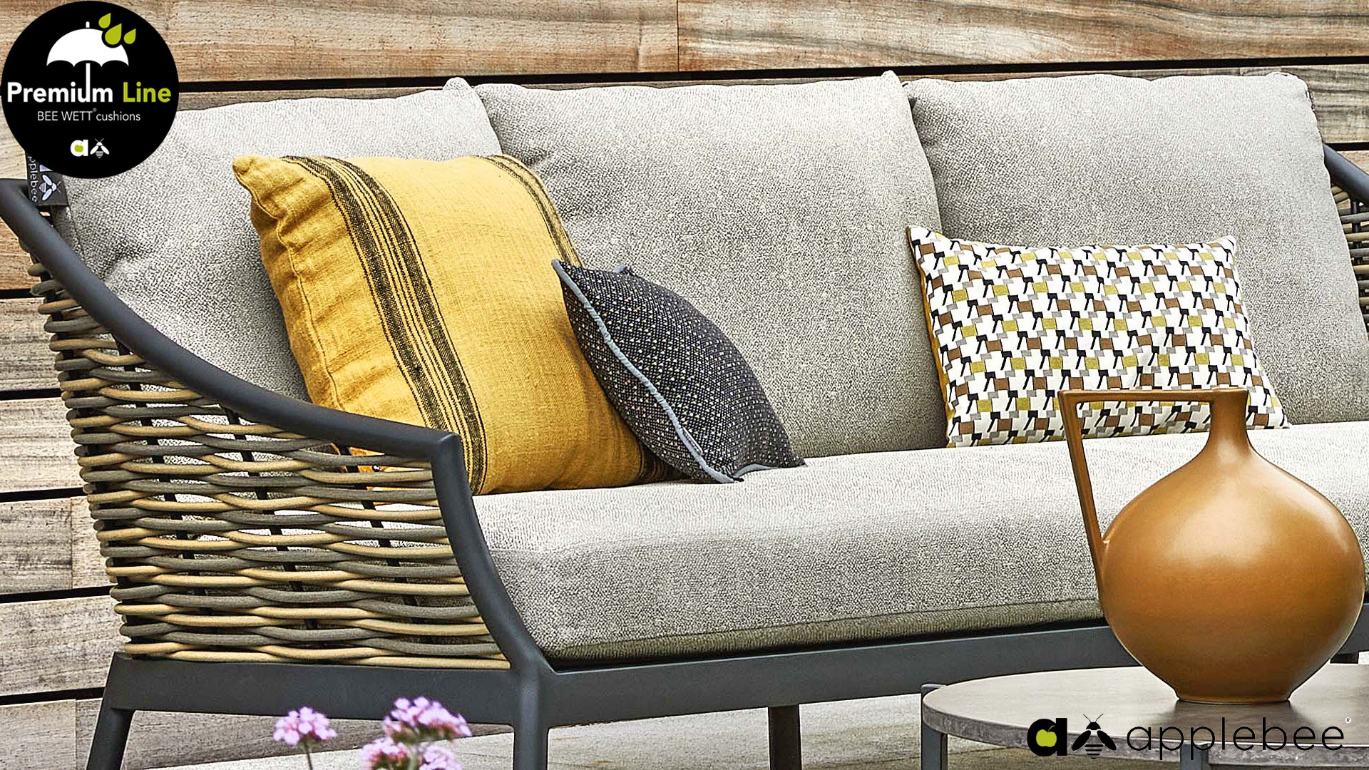 AppleBee Bee Wett sind spezielle wetterfeste Kissen die natürlich draußen liegen bleiben können. Die abnehmbaren Hüllen werden aus den besten möglichen Stoffen hergestellt und sind alle waschbar auf 30°C. Der Stoff ist zusätzlich wasserabstoßend und garantiert UV-beständig. Eine offenes Gewebe an der Unterseite der Kissen sorgt für eine perfekte Drainage. Der Vorteil, dass die Bee Wett Kissen und Polster unglaublich viel schneller trocknen als vergleichbare andere Kissen. Das Stoff hat eine gute Beständigkeit gegen Verfaulen und Stockflecken und darüber hinaus UV-beständig, weich, komfortabel und feuchtigkeitsabstoßend ist. Die Polster sind ausziehbar und waschbar.