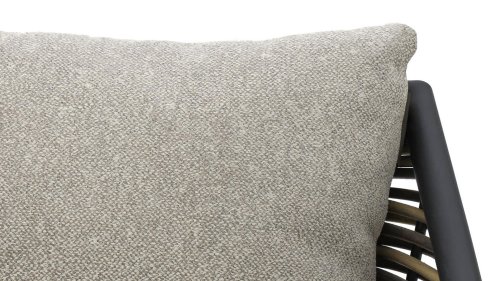 Die Apple Bee Milou Lounge Black besticht durch ihre elegante Flechtoptik und verleiht Ihrer Lounge-Garnitur eine natürliche Note! Sie bietet großzügigen Sitzkomfort und dicke Kissen mit Apple Bees bewährter Bee Wett®-Technologie. Das Gestell besteht aus pulverbeschichtetem Aluminium in Austernfarbe, kombiniert mit robustem Biculair-Flechtgeflecht. Dieses Flechtgeflecht wird von einem ebenfalls pulverbeschichteten Rahmen in Black mit geschwungenen Linien eingefasst, was der Milou ihren schicken, modernen Look verleiht.