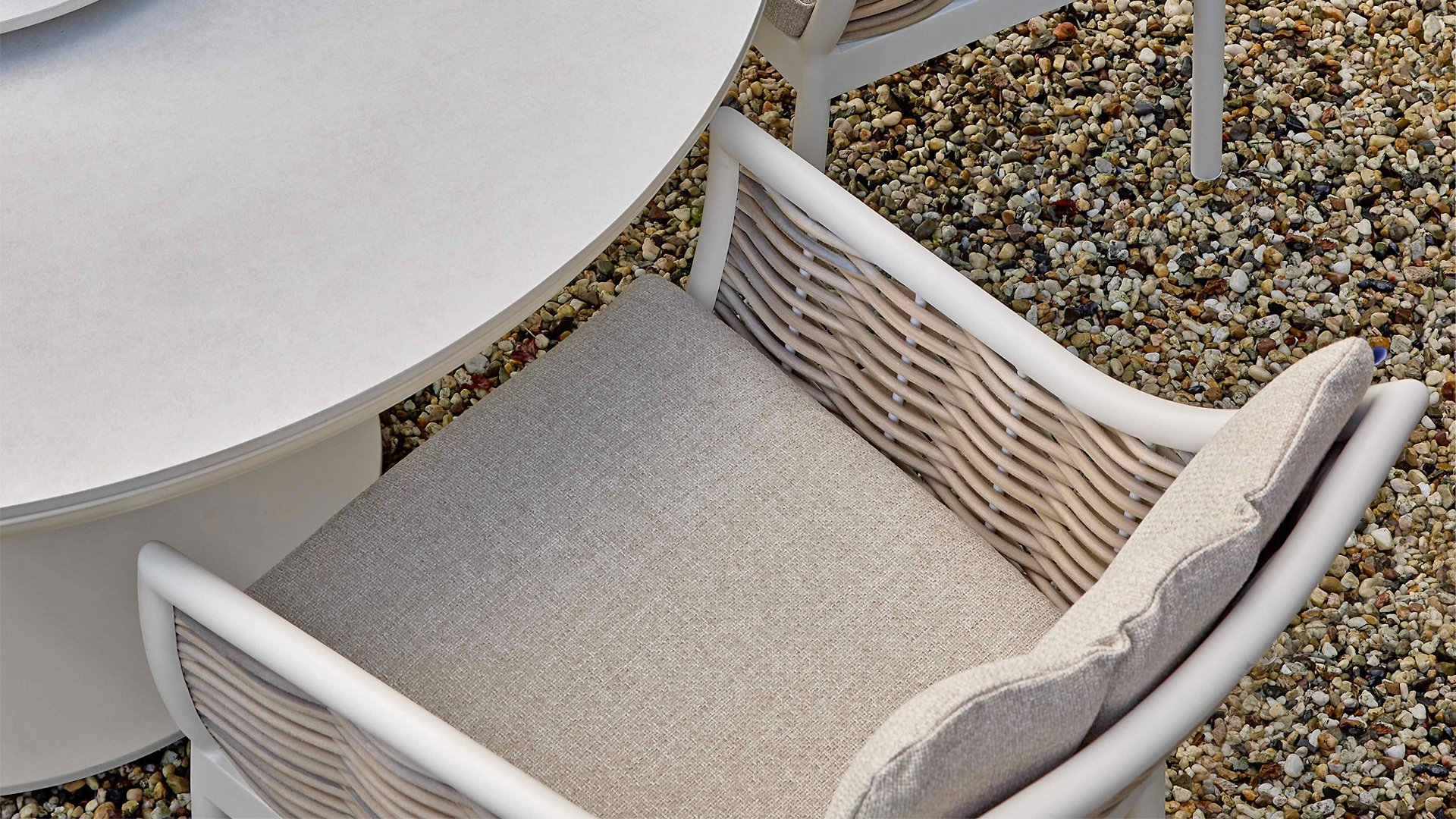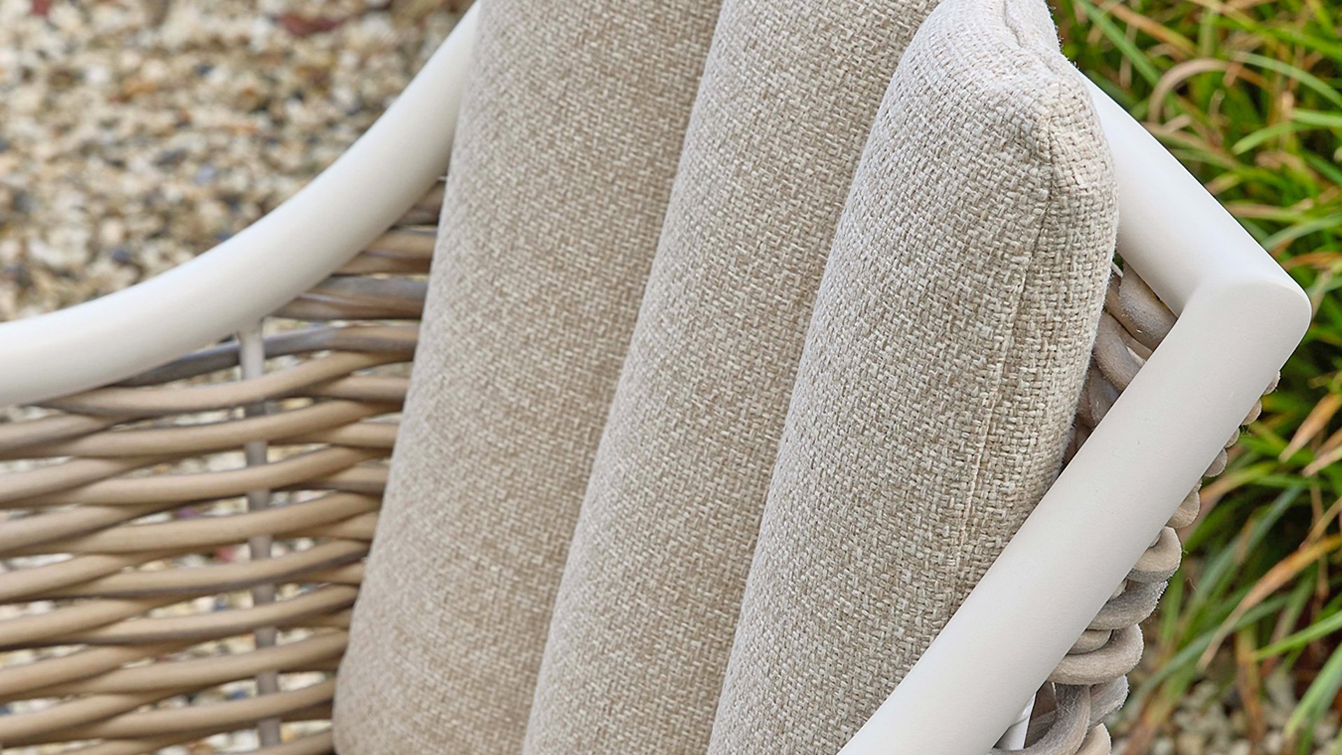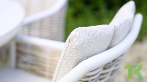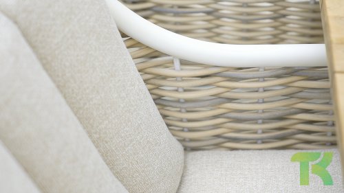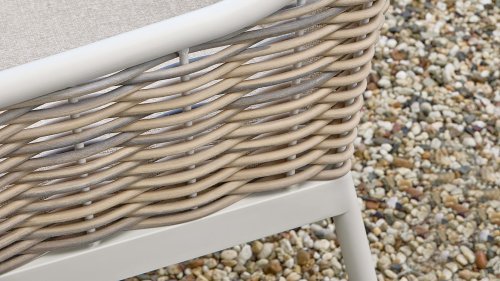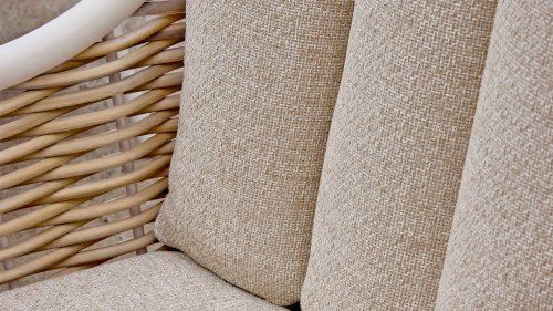 Die Farbe 'Oyster' ist ein sanfter, neutraler Farbton, oft als gebrochenes Weiß beschrieben, der die natürlichen Töne der Kissen und des Rattans perfekt ergänzt. Sie wirkt dezent und beruhigend und erinnert an die Farbe einer Austernschale – daher der Name. Oyster hat eine edle und elegante Ausstrahlung und wird häufig in der Inneneinrichtung für eine ruhige und natürliche Atmosphäre verwendet. Es ist eine vielseitige Farbe, die sich gut mit anderen neutralen Tönen sowie mit kräftigeren Farben für einen subtilen Kontrast kombinieren lässt.
