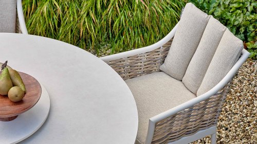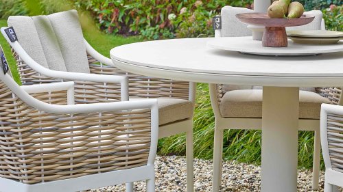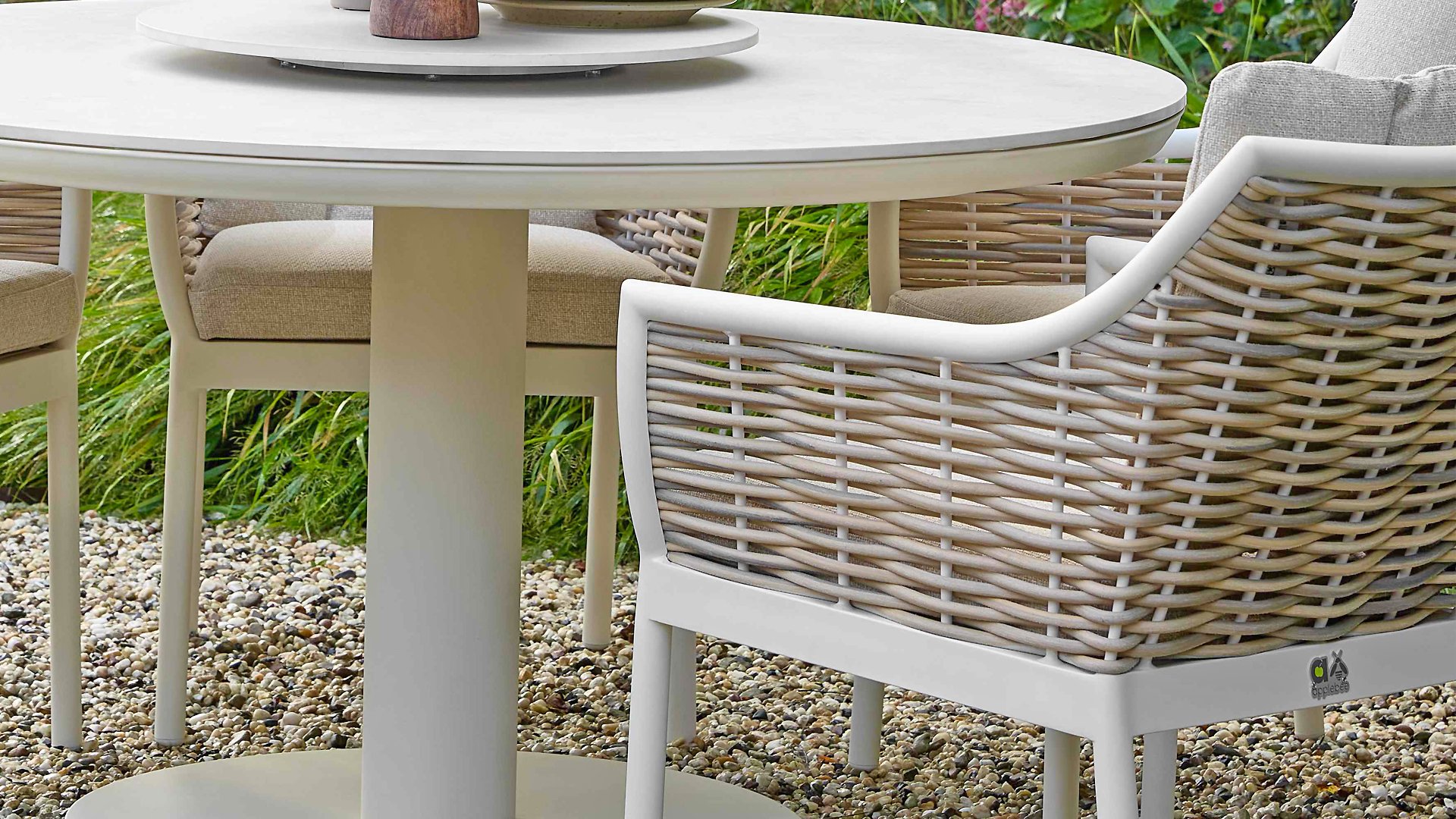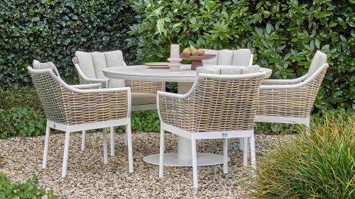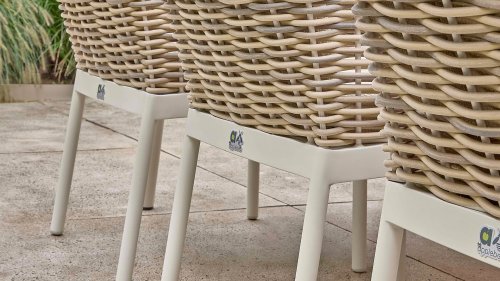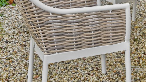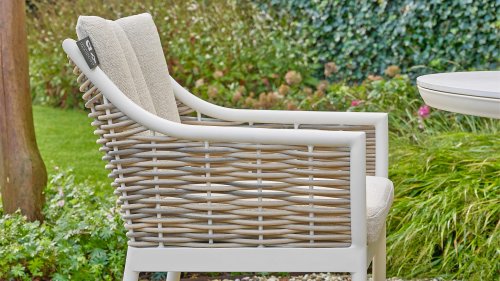Der Mädchenname Milou bedeutet sanft und freundlich. Das Rattan der Apple Bee Milou Oyster Dining erinnert an Weide. Es wirkt natürlich und bietet gleichzeitig die gewohnte, robuste Biculair®-Qualität für den Außenbereich, die Sie von Apple Bee erwarten. Das Rattan wird von einem Oyster, pulverbeschichteten Rahmen mit geschwungenen Linien eingefasst, der der Milou Terrassengruppe ihren schicken, modernen Look verleiht.