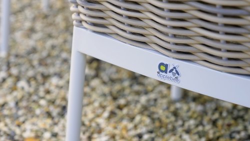 Apple Bee zeichnet sich durch die Verwendung des speziellen Biculair®-Geflechts aus, das ursprünglich für den professionellen Einsatz im Gastgewerbe entwickelt wurde. Dieses Biculair®-Geflecht ist eine naturgetreue und nachhaltige Alternative zu Rattan. Die äußerst strapazierfähige synthetische Rattanfaser (HDPE) ist absolut wetterfest, farbecht, recycelbar und somit eine umweltfreundliche Wahl. Aussehen und Funktionalität der Möbel bleiben von den europäischen Witterungsbedingungen unbeeinträchtigt, und die Farben behalten ihre natürliche Leuchtkraft. Die überlegene Qualität dieses Geflechts, bestätigt von der Niederländischen Organisation für Angewandte Naturwissenschaftliche Forschung (TNO), zeigt sich deutlich im Vergleich zu anderen vergleichbaren Materialien.