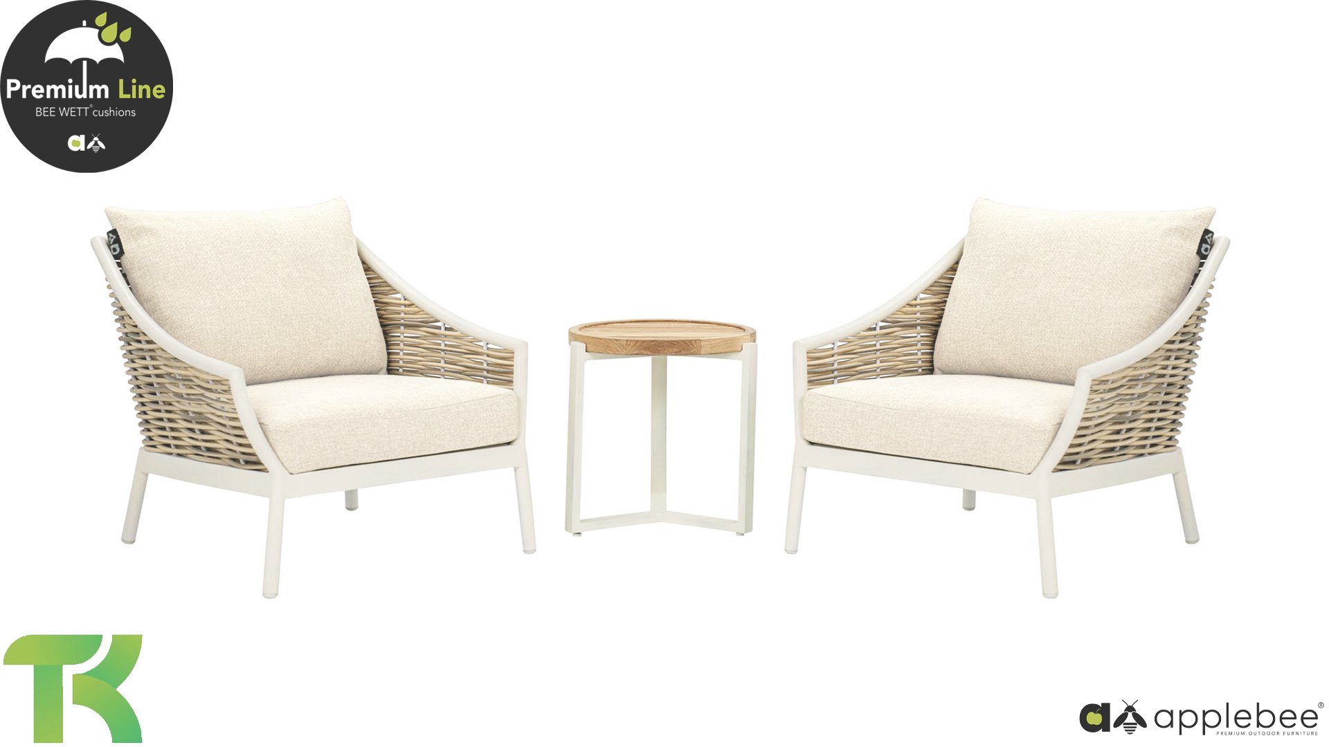Die Apple Bee Milou Lounge Oyster besticht durch ihre elegante Flechtoptik und verleiht Ihrer Lounge-Garnitur eine natürliche Note! Sie bietet großzügigen Sitzkomfort und dicke Kissen mit Apple Bees bewährter Bee Wett®-Technologie. Das Gestell besteht aus pulverbeschichtetem Aluminium in Austernfarbe, kombiniert mit robustem Biculair-Flechtgeflecht. Dieses Flechtgeflecht wird von einem ebenfalls pulverbeschichteten Rahmen in Austernfarbe mit geschwungenen Linien eingefasst, was der Milou ihren schicken, modernen Look verleiht.