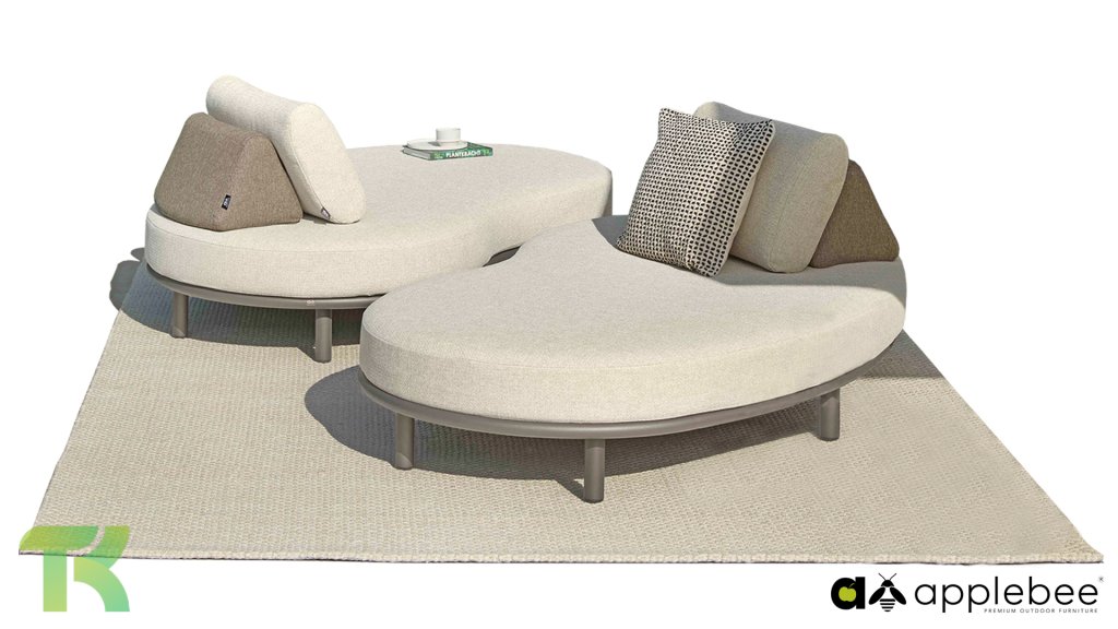 Das Apple Bee Moon Island Lounge-Set bricht mit den traditionellen, geradlinigen Formen von Gartenmöbeln. Die weichen, abgerundeten Konturen verleihen Ihrer Terrasse sofort ein modernes und einladendes Ambiente. Das Besondere an diesem Set ist seine absolute Bewegungsfreiheit: Die Rückenlehnen sind nicht am Gestell befestigt. Dank der beschwerten Rückenlehne bleiben die stilvollen, braunen Rückenlehnen fest an ihrem Platz und verrutschen nicht. So können Sie Ihre bevorzugte Sitzposition ganz individuell gestalten: direkt gegenüber für eine angenehme Unterhaltung oder quer über das Sofa für pure Entspannung.