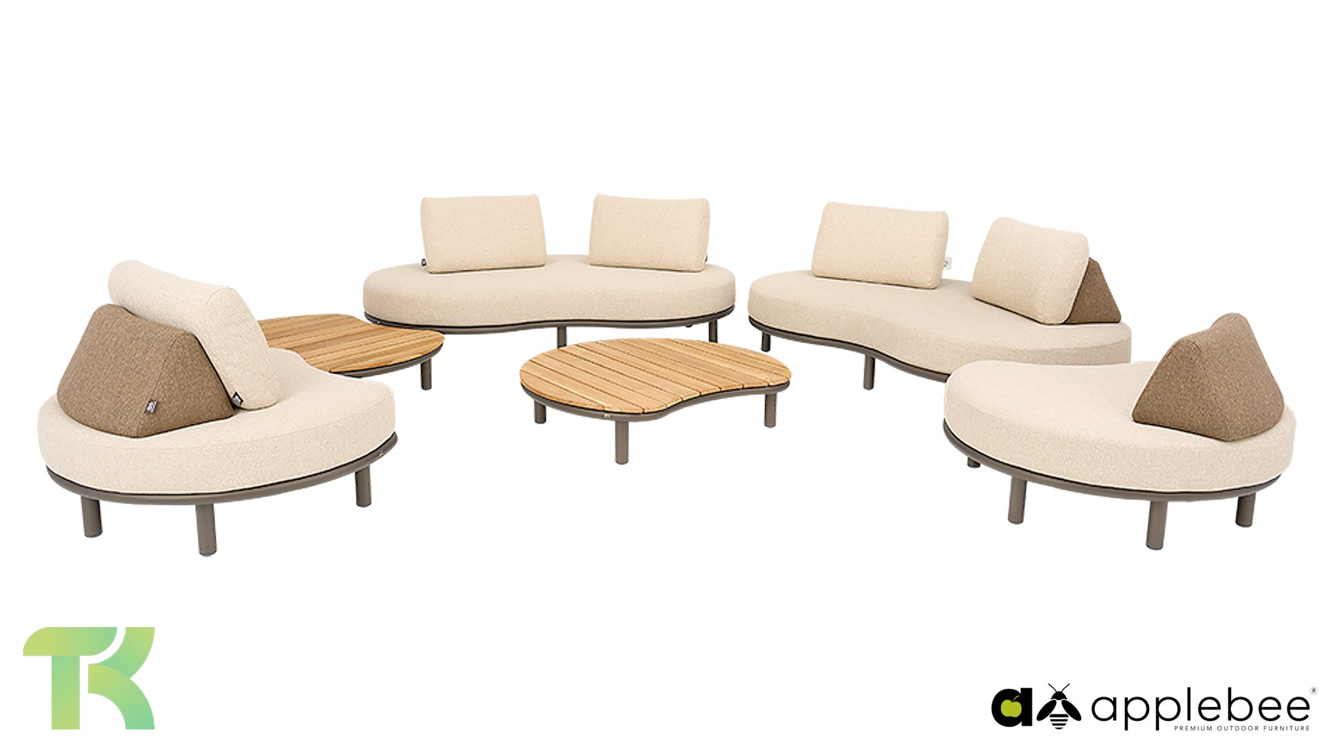 Das Apple Bee Moon Island Lounge-Set bricht mit den traditionellen, geradlinigen Formen von Gartenmöbeln. Die weichen, abgerundeten Konturen verleihen Ihrer Terrasse sofort ein modernes und einladendes Ambiente. Das Besondere an diesem Set ist seine absolute Bewegungsfreiheit: Die Rückenlehnen sind nicht am Gestell befestigt. Dank der beschwerten Rückenlehne bleiben die stilvollen, braunen Rückenlehnen fest an ihrem Platz und verrutschen nicht. So können Sie Ihre bevorzugte Sitzposition ganz individuell gestalten: direkt gegenüber für eine angenehme Unterhaltung oder quer über das Sofa für pure Entspannung.