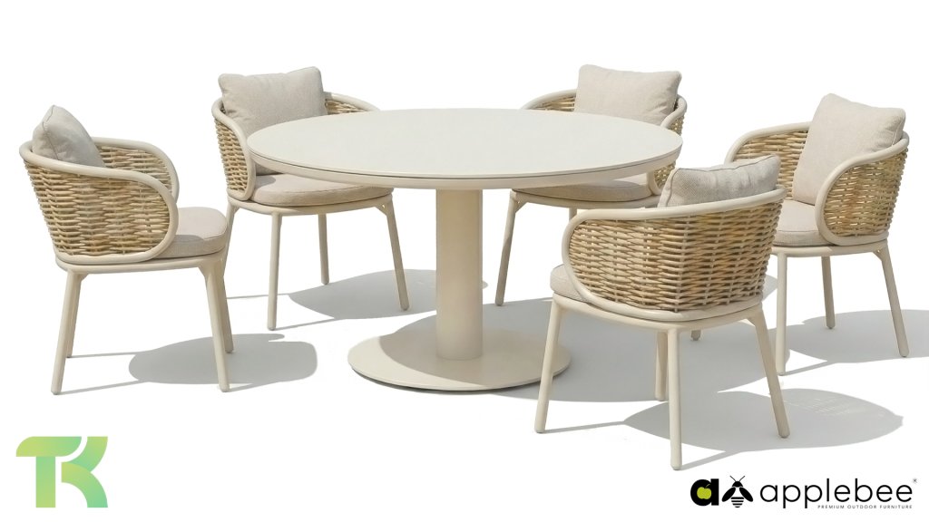 Entdecken Sie den Apple Bee Melville Tisch – ein stilvoller Blickfang, der Ihren Außenbereich aufwertet. Mit seiner runden Form (Ø 140 x 77 cm) schafft dieser Tisch mühelos eine gemütliche Atmosphäre für lange Sommerabende, stimmungsvolle Abendessen und entspannte Momente mit Familie und Freunden. Erhältlich in drei Farben: Oyster, Black und Bronze.