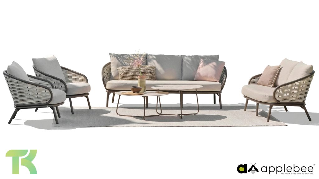 Apple Bee zeichnet sich durch die Verwendung des speziellen Biculair®-Geflechts aus, das ursprünglich für den professionellen Einsatz im Gastgewerbe entwickelt wurde. Dieses Biculair®-Geflecht ist eine naturgetreue und nachhaltige Alternative zu Rattan. Die äußerst strapazierfähige synthetische Rattanfaser (HDPE) ist absolut wetterfest, farbecht, recycelbar und somit eine umweltfreundliche Wahl. Aussehen und Funktionalität der Möbel bleiben von den europäischen Witterungsbedingungen unbeeinträchtigt, und die Farben behalten ihre natürliche Leuchtkraft. Die überlegene Qualität dieses Geflechts, bestätigt von der Niederländischen Organisation für Angewandte Naturwissenschaftliche Forschung (TNO), zeigt sich deutlich im Vergleich zu anderen vergleichbaren Materialien.