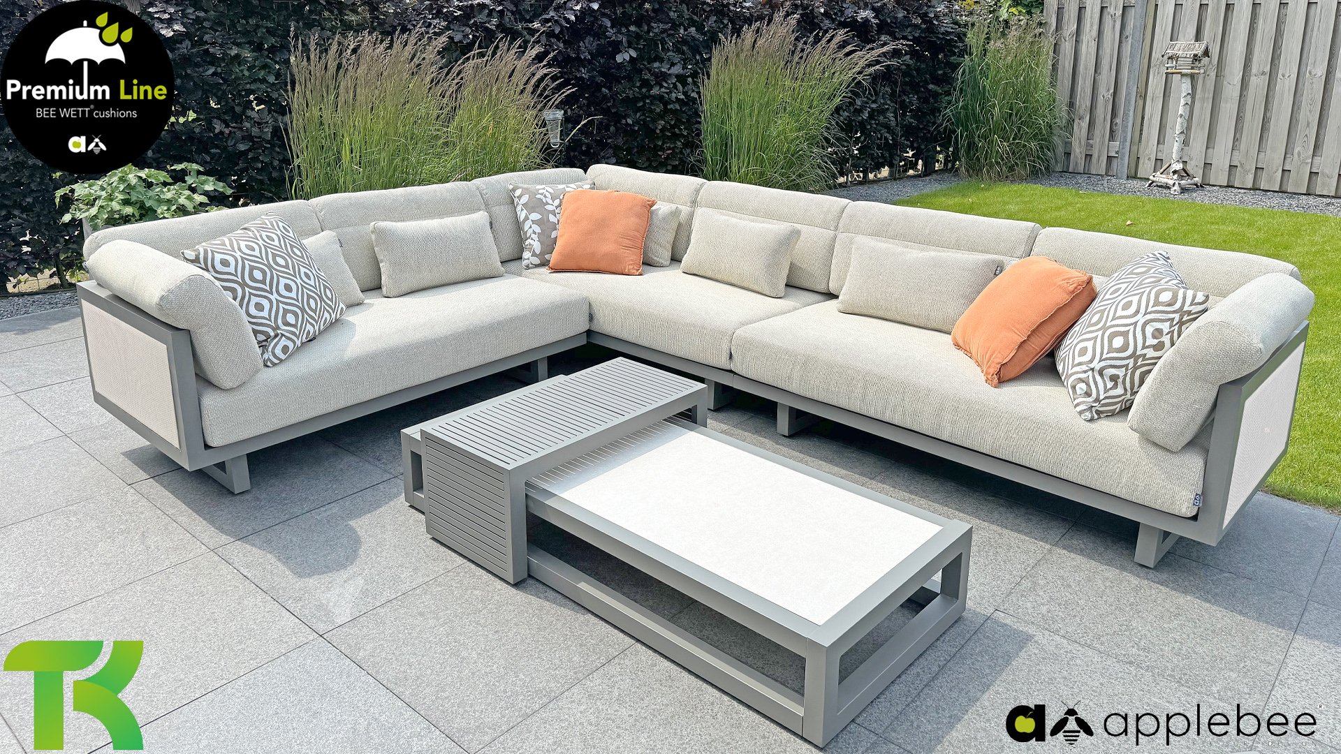 AppleBee Bee Wett sind spezielle wetterfeste Kissen die natürlich draußen liegen bleiben können. Die abnehmbaren Hüllen werden aus den besten möglichen Stoffen hergestellt und sind alle waschbar auf 30°C. Der Stoff ist zusätzlich wasserabstoßend und garantiert UV-beständig. Eine offenes Gewebe an der Unterseite der Kissen sorgt für eine perfekte Drainage. Der Vorteil, dass die Bee Wett Kissen und Polster unglaublich viel schneller trocknen als vergleichbare andere Kissen. Das Stoff hat eine gute Beständigkeit gegen Verfaulen und Stockflecken und darüber hinaus UV-beständig, weich, komfortabel und feuchtigkeitsabstoßend ist. Die Polster sind ausziehbar und waschbar.