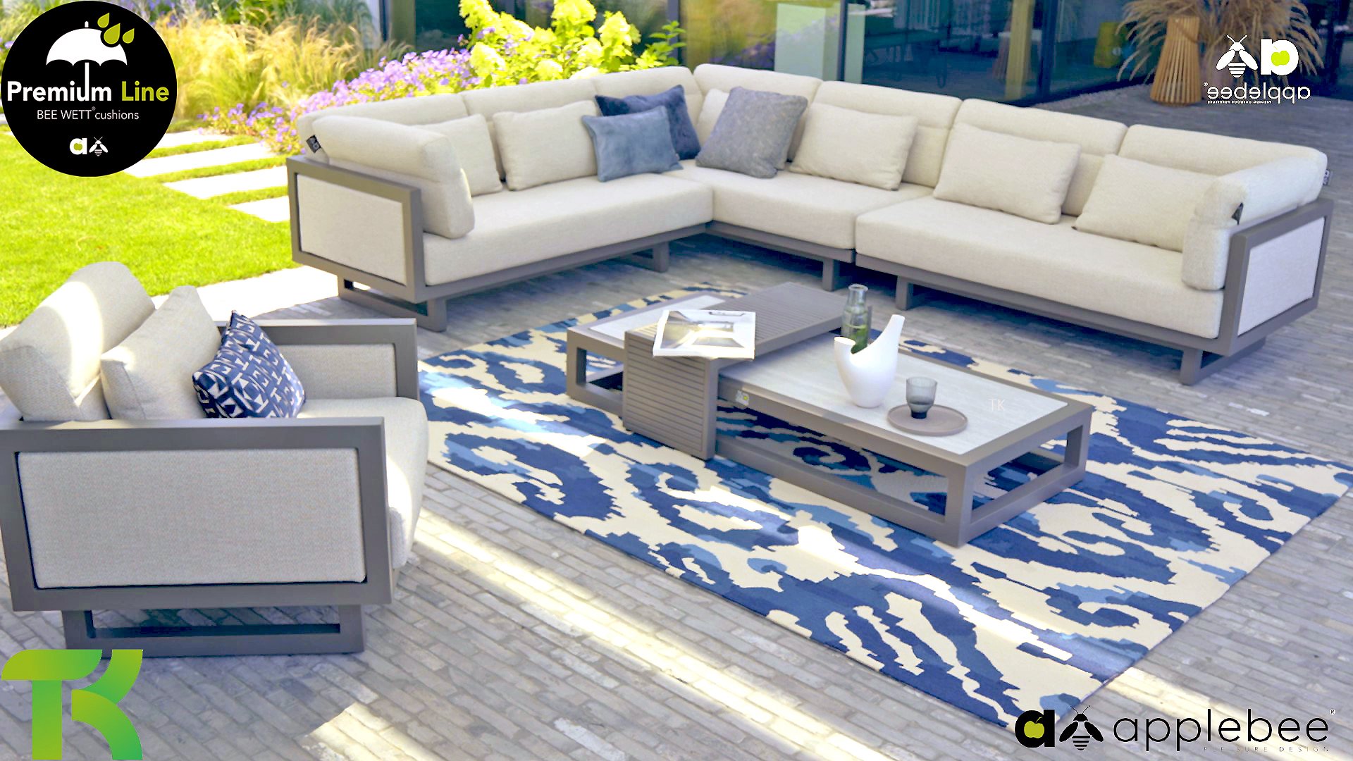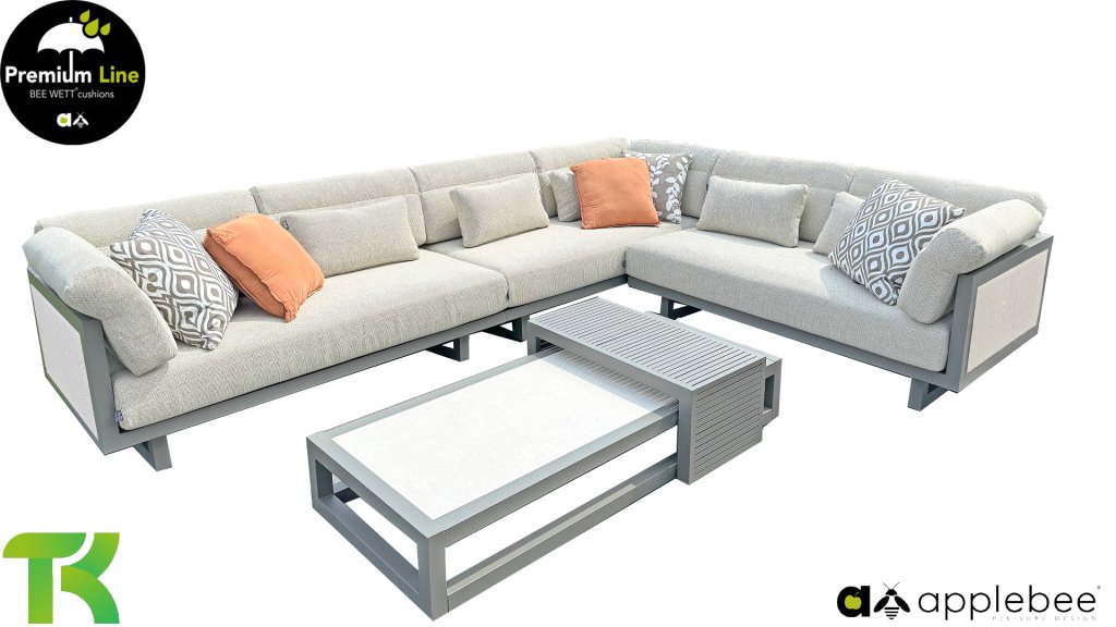 AppleBee Bee Wett sind spezielle wetterfeste Kissen die natürlich draußen liegen bleiben können. Die abnehmbaren Hüllen werden aus den besten möglichen Stoffen hergestellt und sind alle waschbar auf 30°C. Der Stoff ist zusätzlich wasserabstoßend  und garantiert UV-beständig. Eine offenes Gewebe an der Unterseite der Kissen sorgt für eine perfekte Drainage. Der Vorteil, dass die Bee Wett Kissen und Polster unglaublich viel schneller trocknen als vergleichbare andere Kissen. Das Stoff hat eine gute Beständigkeit gegen Verfaulen und Stockflecken und darüber hinaus UV-beständig, weich, komfortabel und feuchtigkeitsabstoßend ist. Die Polster sind ausziehbar und waschbar.