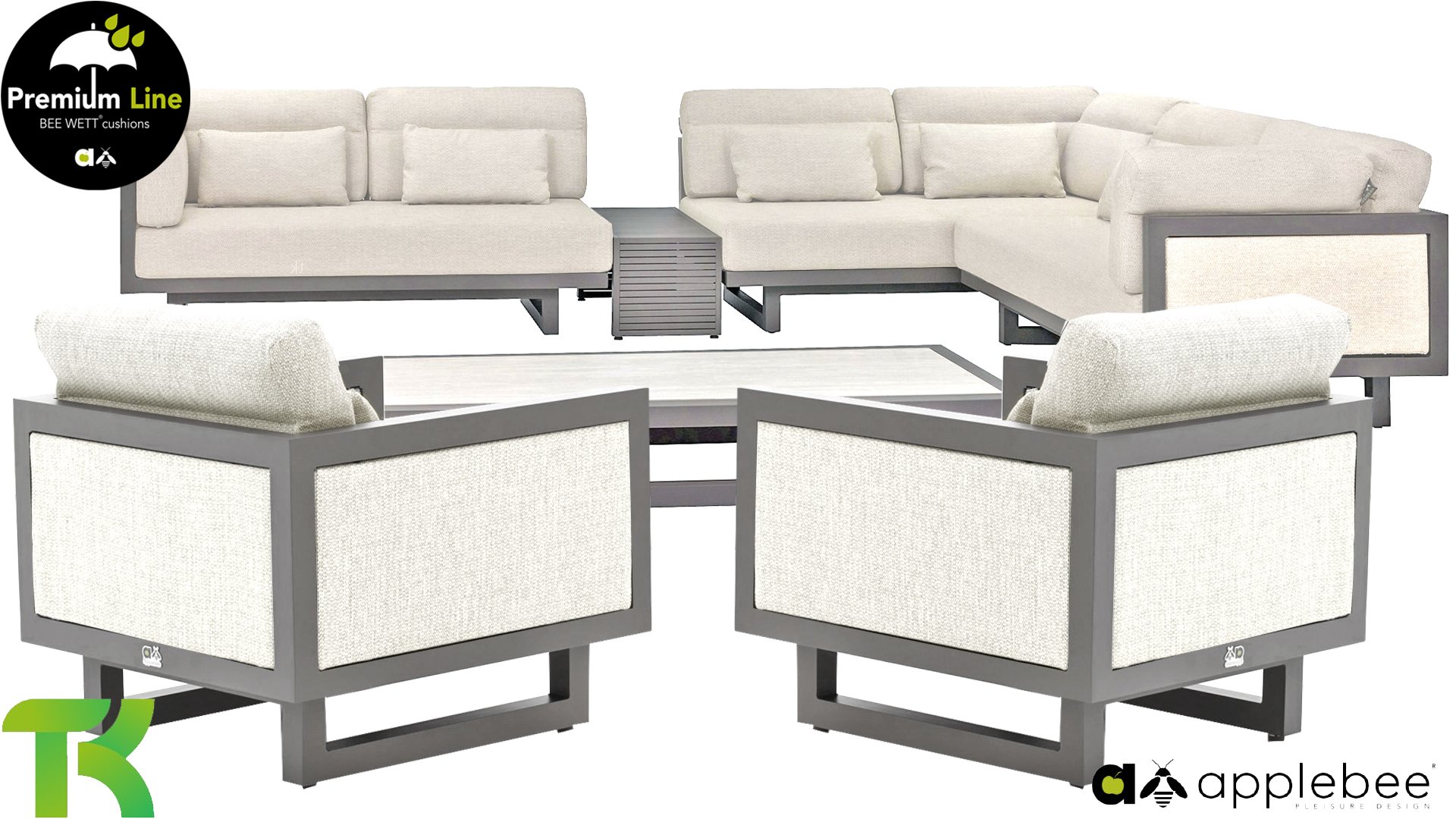 AppleBee Bee Wett sind spezielle wetterfeste Kissen die natürlich draußen liegen bleiben können. Die abnehmbaren Hüllen werden aus den besten möglichen Stoffen hergestellt und sind alle waschbar auf 30°C. Der Stoff ist zusätzlich wasserabstoßend  und garantiert UV-beständig. Eine offenes Gewebe an der Unterseite der Kissen sorgt für eine perfekte Drainage. Der Vorteil, dass die Bee Wett Kissen und Polster unglaublich viel schneller trocknen als vergleichbare andere Kissen. Das Stoff hat eine gute Beständigkeit gegen Verfaulen und Stockflecken und darüber hinaus UV-beständig, weich, komfortabel und feuchtigkeitsabstoßend ist. Die Polster sind ausziehbar und waschbar.