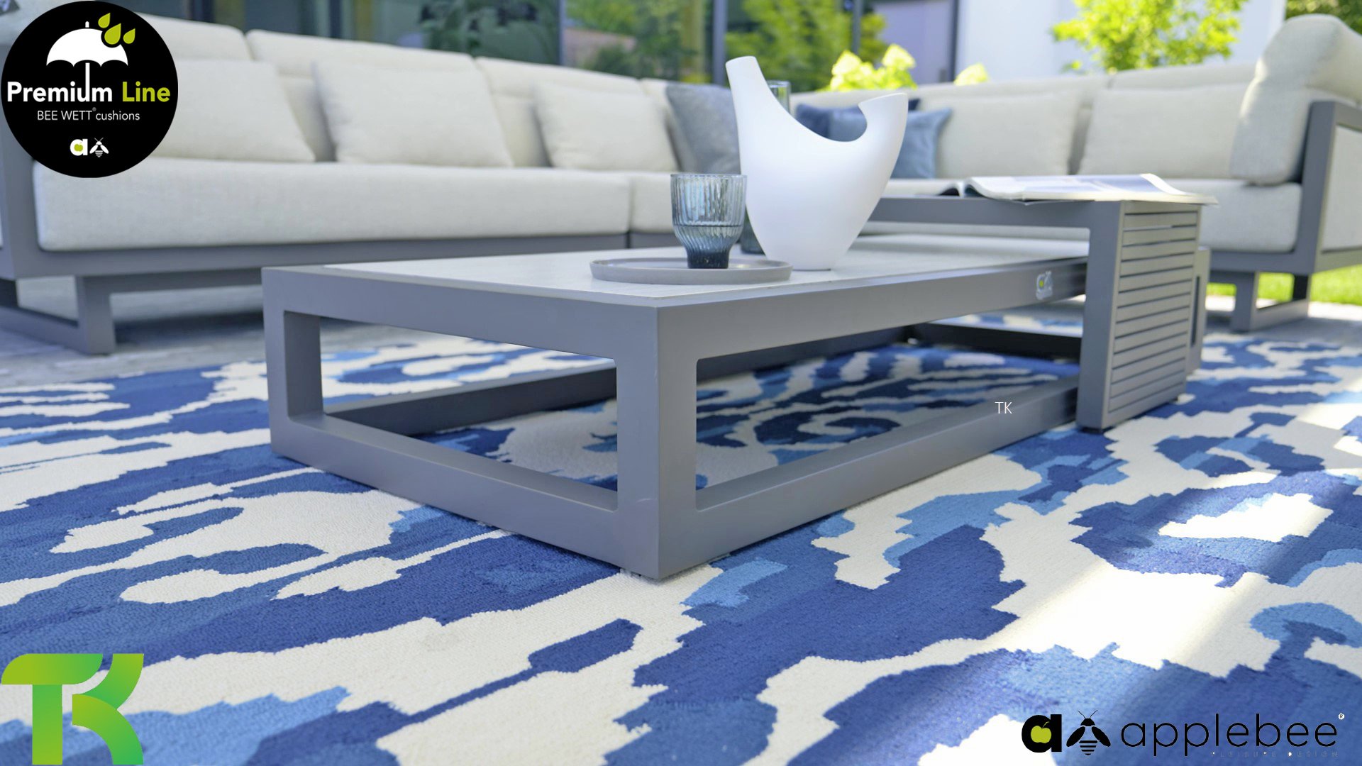 Der Apple Bee Santorini Beistelltisch, komplett aus Aluminium in der Farbe Quarz. Es ist ein verspielter Beistelltisch, da der Beistelltisch über dem Santorini Couchtisch 155cm positioniert werden kann und/oder zwischen 2 2-Sitzer-Elementen. Was in Kombination gut zur Apple Bee Santorini Loungeset oder dem Apple Bee Santorini Loungeset Rope passt!
