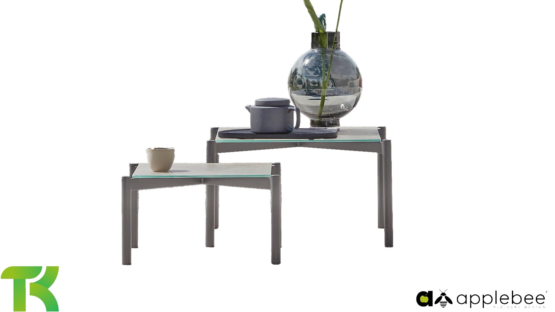 1 x Apple Bee St. Lucia Kaffeetisch 53x53xH30cm Aluminium Quartz-Keramik Travetino