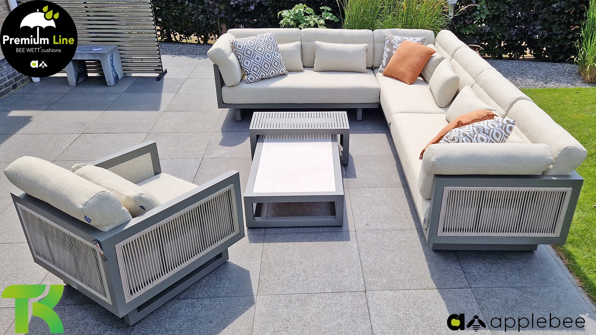 AppleBee Bee Wett sind spezielle wetterfeste Kissen die natürlich draußen liegen bleiben können. Die abnehmbaren Hüllen werden aus den besten möglichen Stoffen hergestellt und sind alle waschbar auf 30°C. Der Stoff ist zusätzlich wasserabstoßend  und garantiert UV-beständig. Eine offenes Gewebe an der Unterseite der Kissen sorgt für eine perfekte Drainage. Der Vorteil, dass die Bee Wett Kissen und Polster unglaublich viel schneller trocknen als vergleichbare andere Kissen. Das Stoff hat eine gute Beständigkeit gegen Verfaulen und Stockflecken und darüber hinaus UV-beständig, weich, komfortabel und feuchtigkeitsabstoßend ist. Die Polster sind ausziehbar und waschbar.