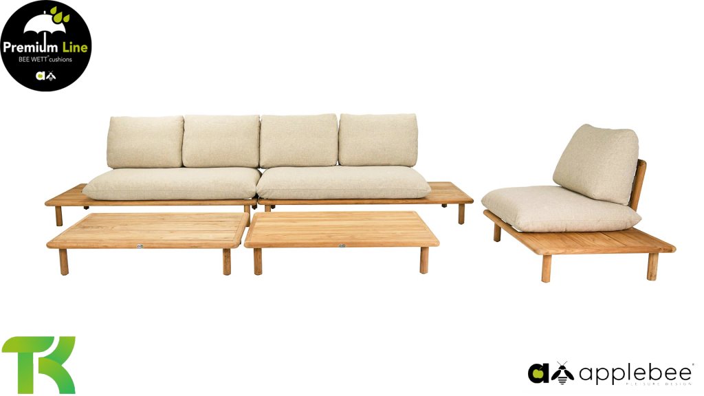 Das Sling Lounge-Set von Applebee ist ein geräumiges Lounge-Set aus Teakholz mit hohem Sitzkomfort durch die extra dicken Kissen. Ein ideales Lounge-Set, um wundervolle Sommerabende zu genießen. Das Sling Lounge-Set von Applebee ist ein geräumiges Lounge-Set aus Teakholz mit hohem Sitzkomfort durch die extra dicken Kissen. Ein ideales Lounge-Set, um wundervolle Sommerabende zu genießen.
