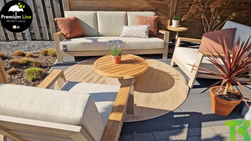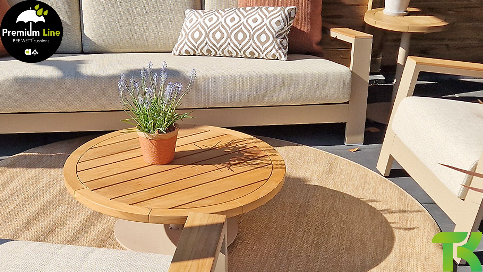 | Materialien Loungegruppe | Teak, Pulverbeschichtet Aluminium/Stahl |