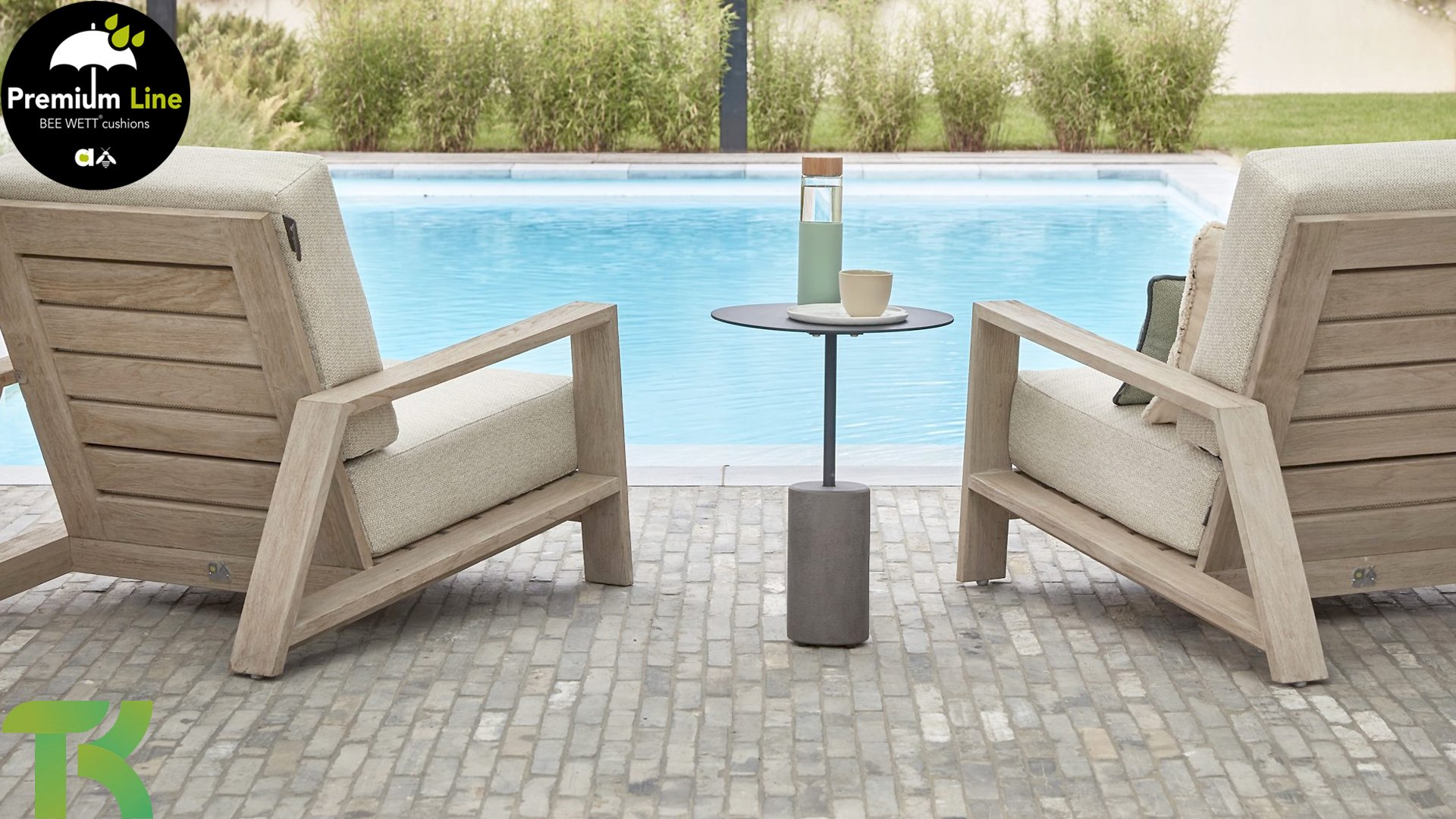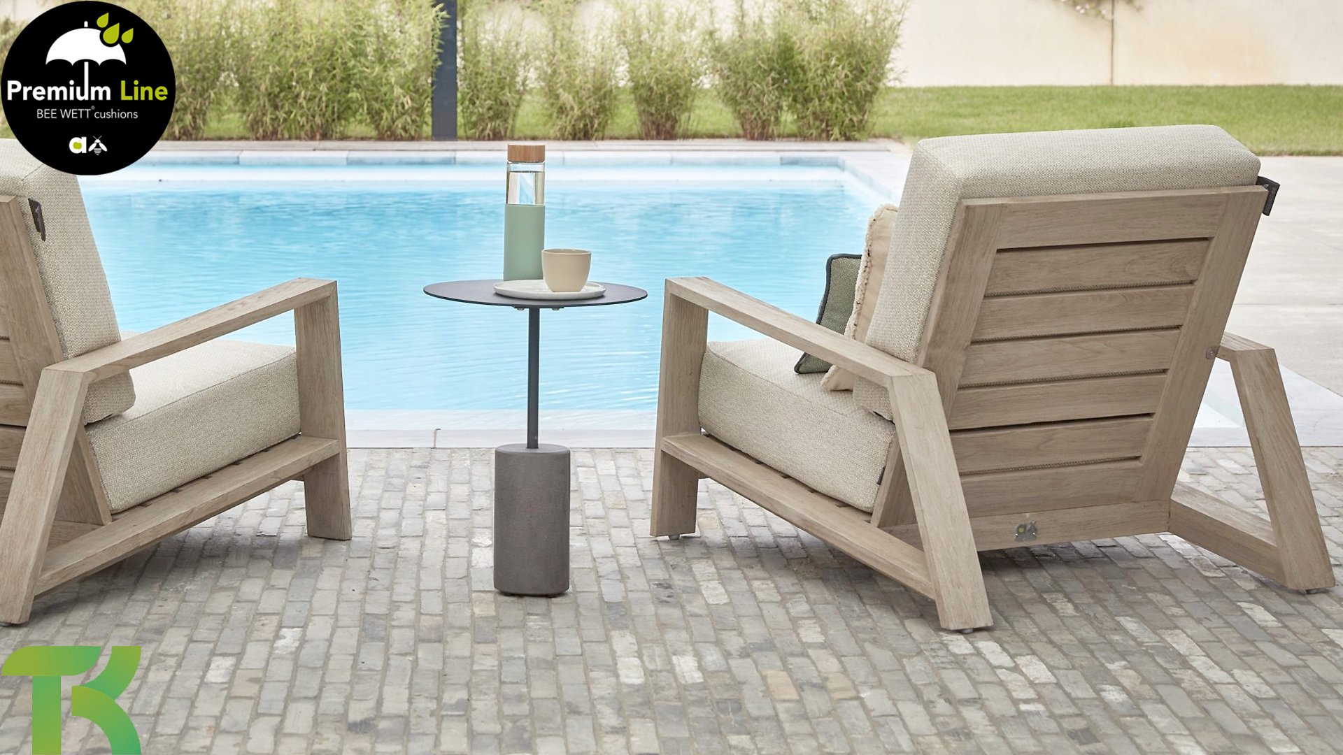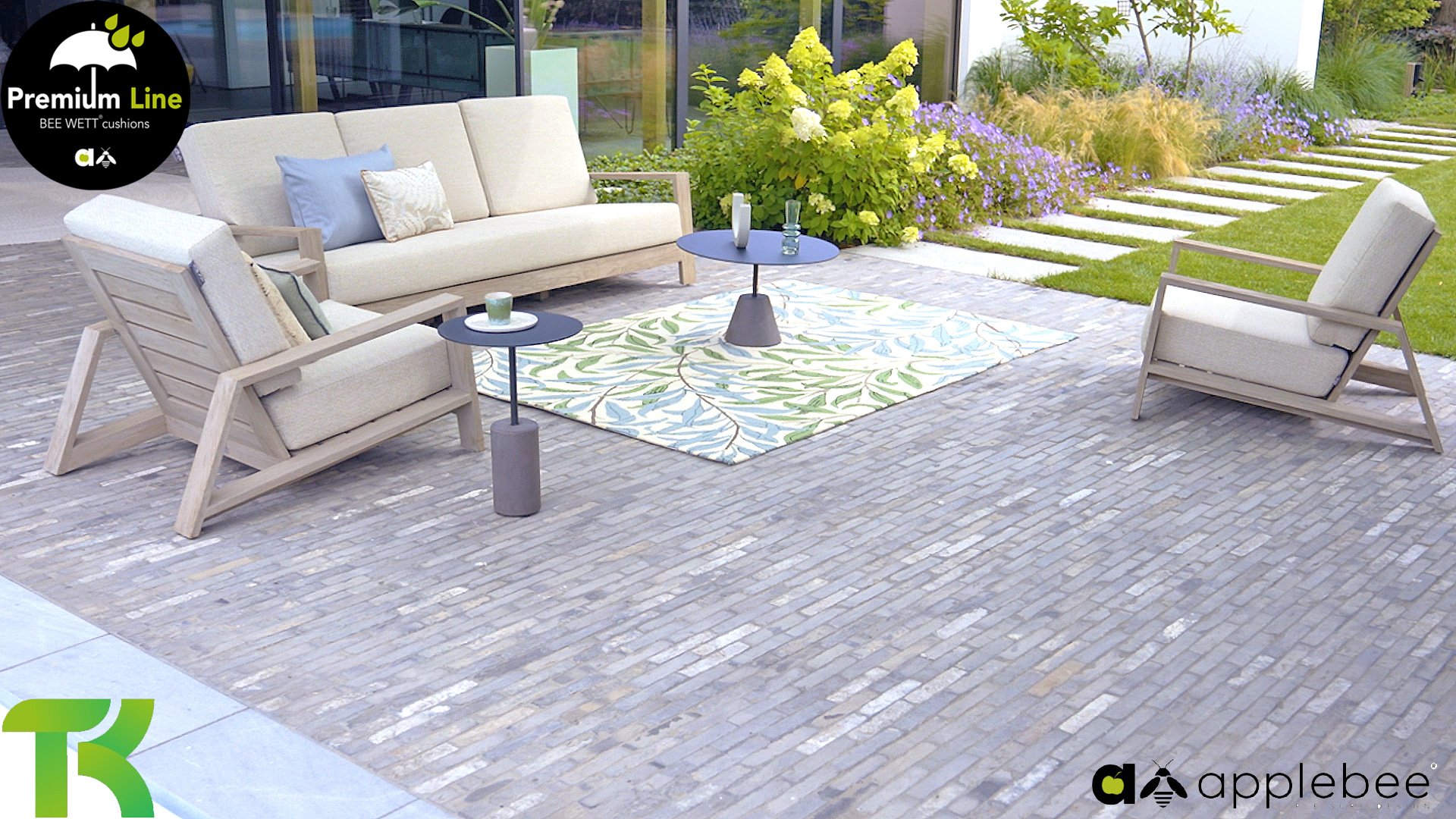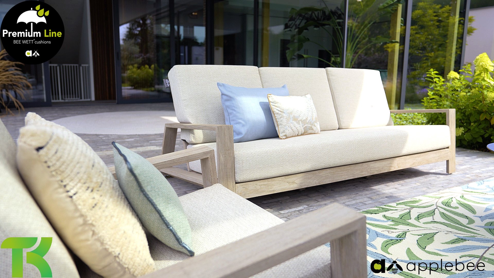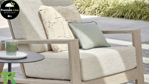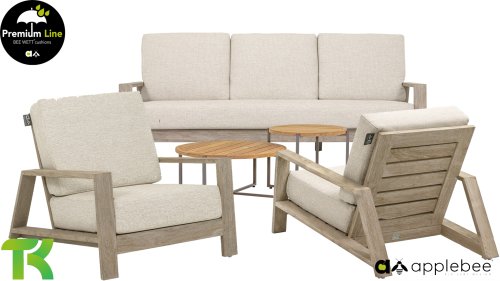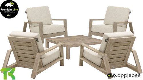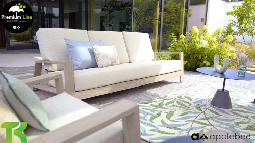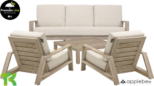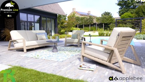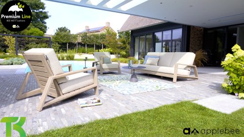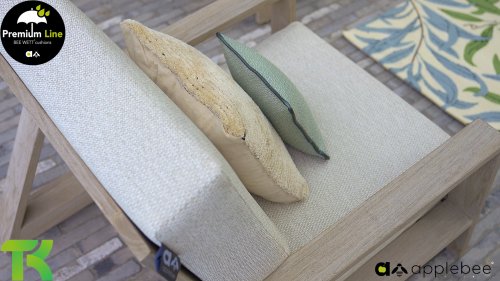 Die Applebee Teakholz-Kollektion Spring ist minimalistisch und sauber, fällt aber dennoch durch ihr auffallendes Design ins Auge. Klare diagonale Linien, handgefertigtes Teakholz in Coastal-Optik und weiche, bequeme Kissen in der sandfarbenen Polsterung. Die Möbel sind vollständig aus hochwertigem Teakholz gefertigt, so dass die Garnitur auch dann noch schön aussieht, wenn sie ohne Kissen in Ihrem Garten steht. Ein Ton auf Ton Meisterstück!