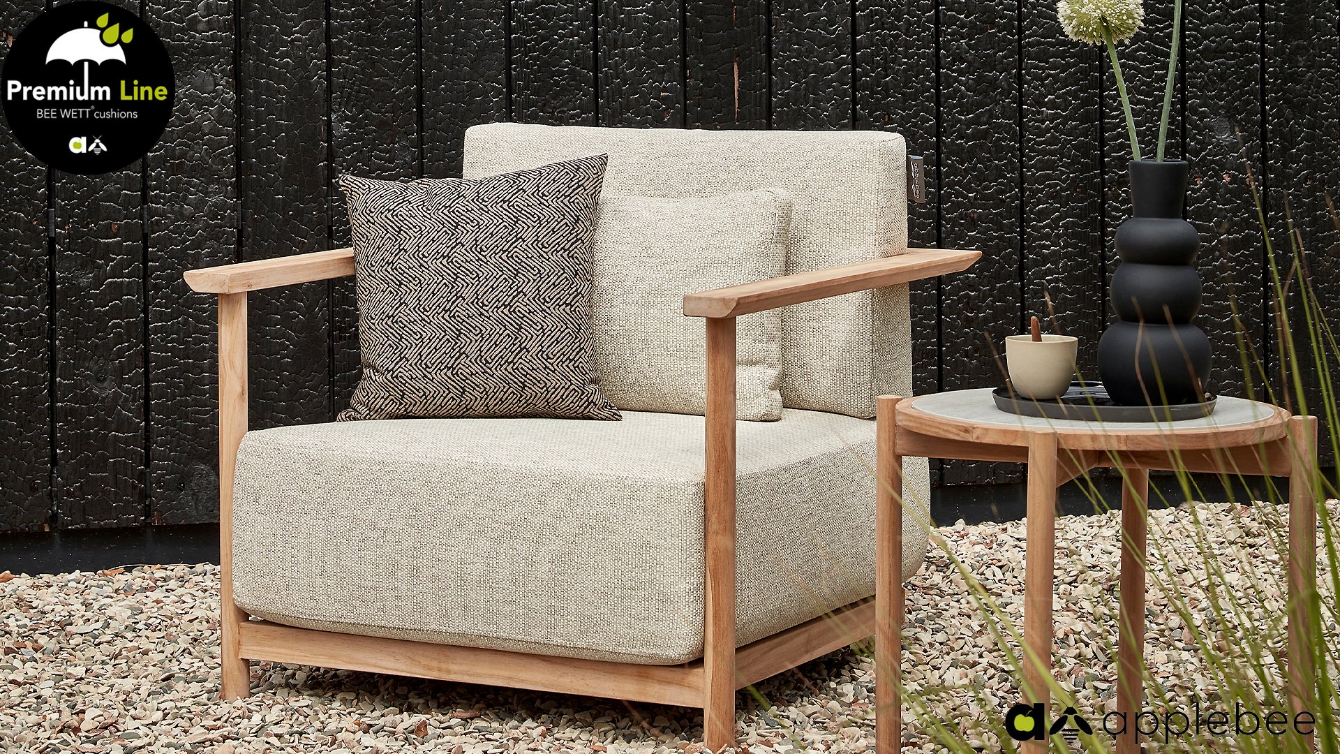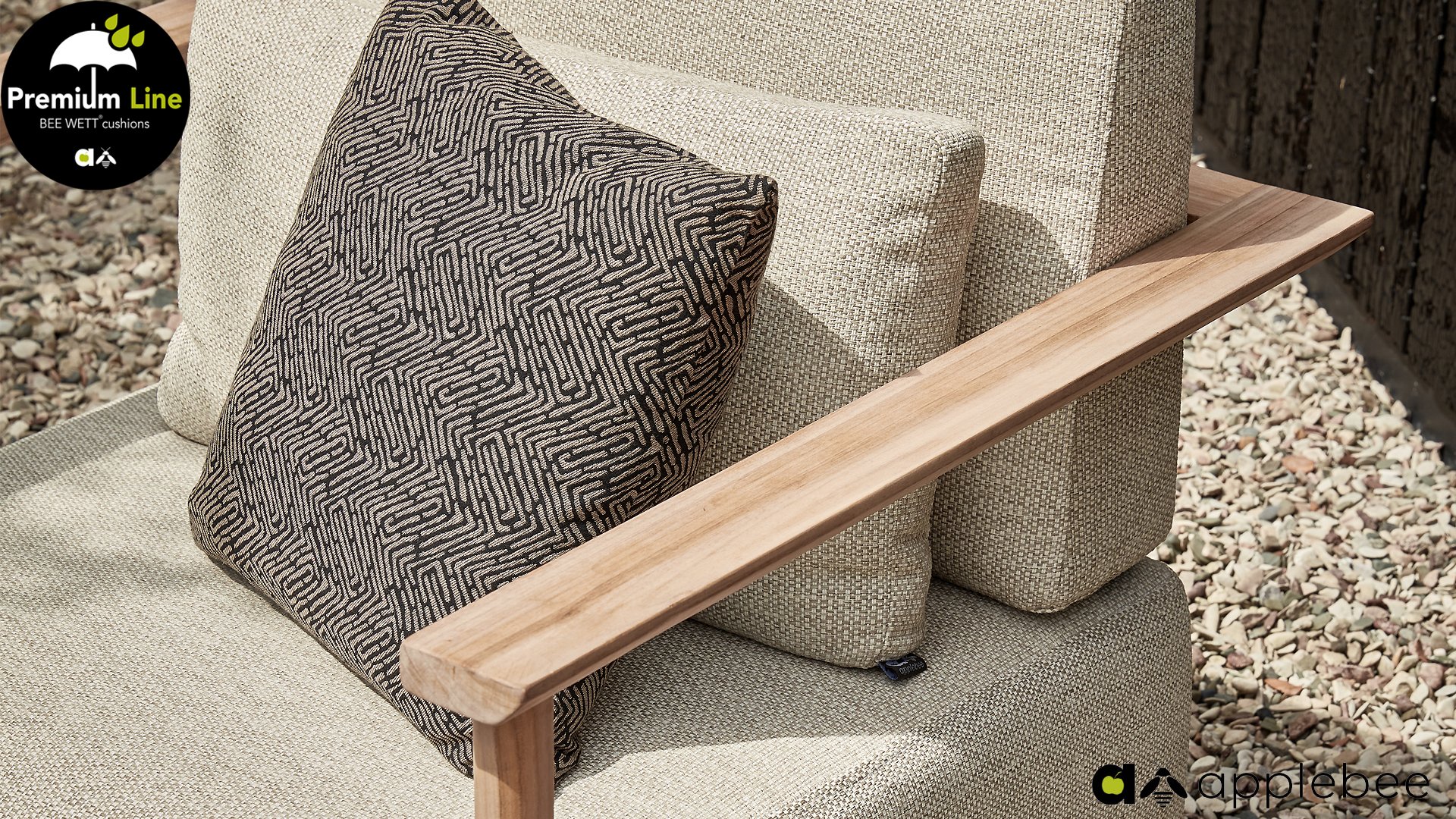 AppleBee Bee Wett sind spezielle wetterfeste Kissen die natürlich draußen liegen bleiben können. Die abnehmbaren Hüllen werden aus den besten möglichen Stoffen hergestellt und sind alle waschbar auf 30°C. Der Stoff ist zusätzlich wasserabstoßend und garantiert UV-beständig. Eine offenes Gewebe an der Unterseite der Kissen sorgt für eine perfekte Drainage. Der Vorteil, dass die Bee Wett Kissen und Polster unglaublich viel schneller trocknen als vergleichbare andere Kissen. Das Stoff hat eine gute Beständigkeit gegen Verfaulen und Stockflecken und darüber hinaus UV-beständig, weich, komfortabel und feuchtigkeitsabstoßend ist. Die Polster sind ausziehbar und waschbar.