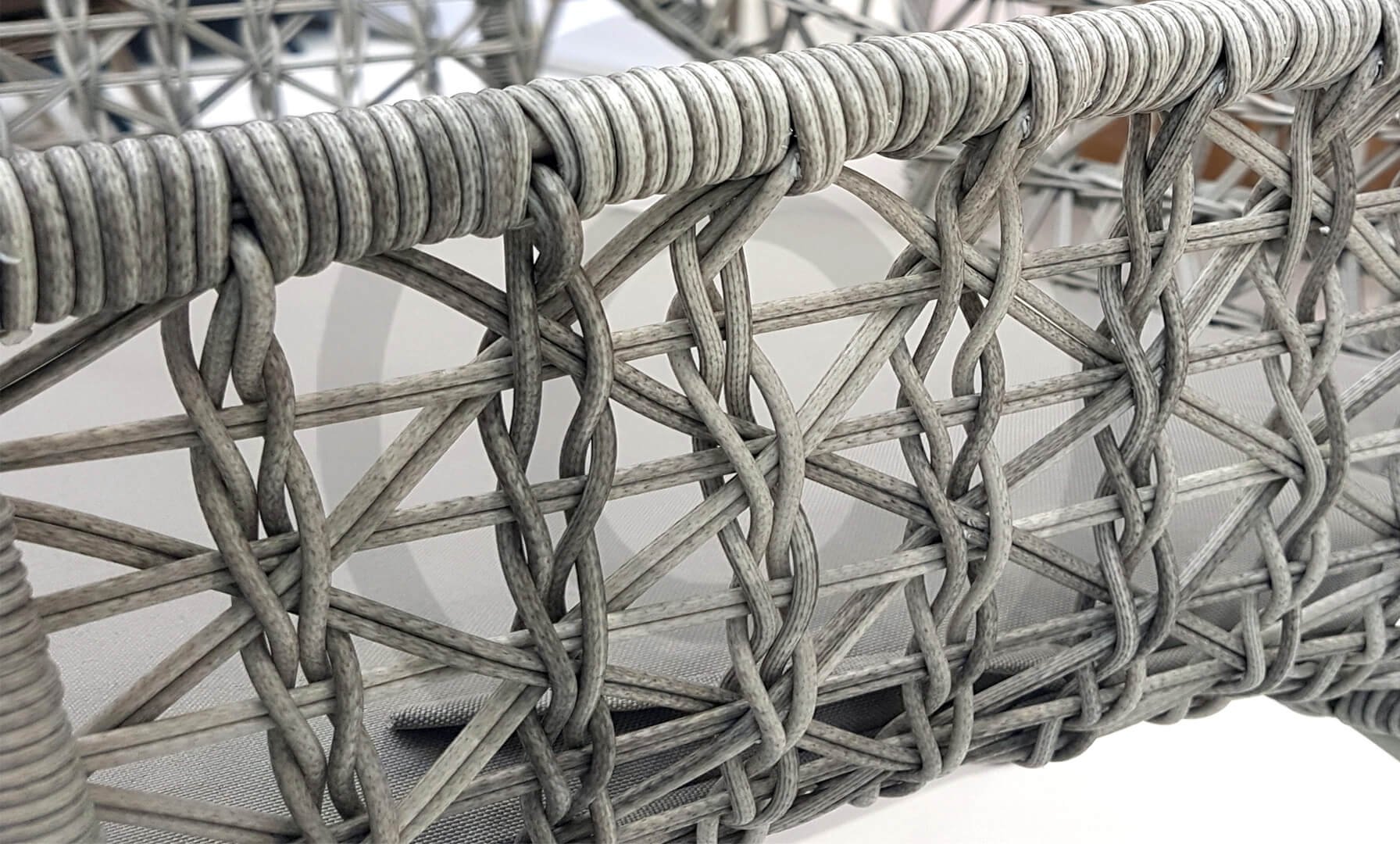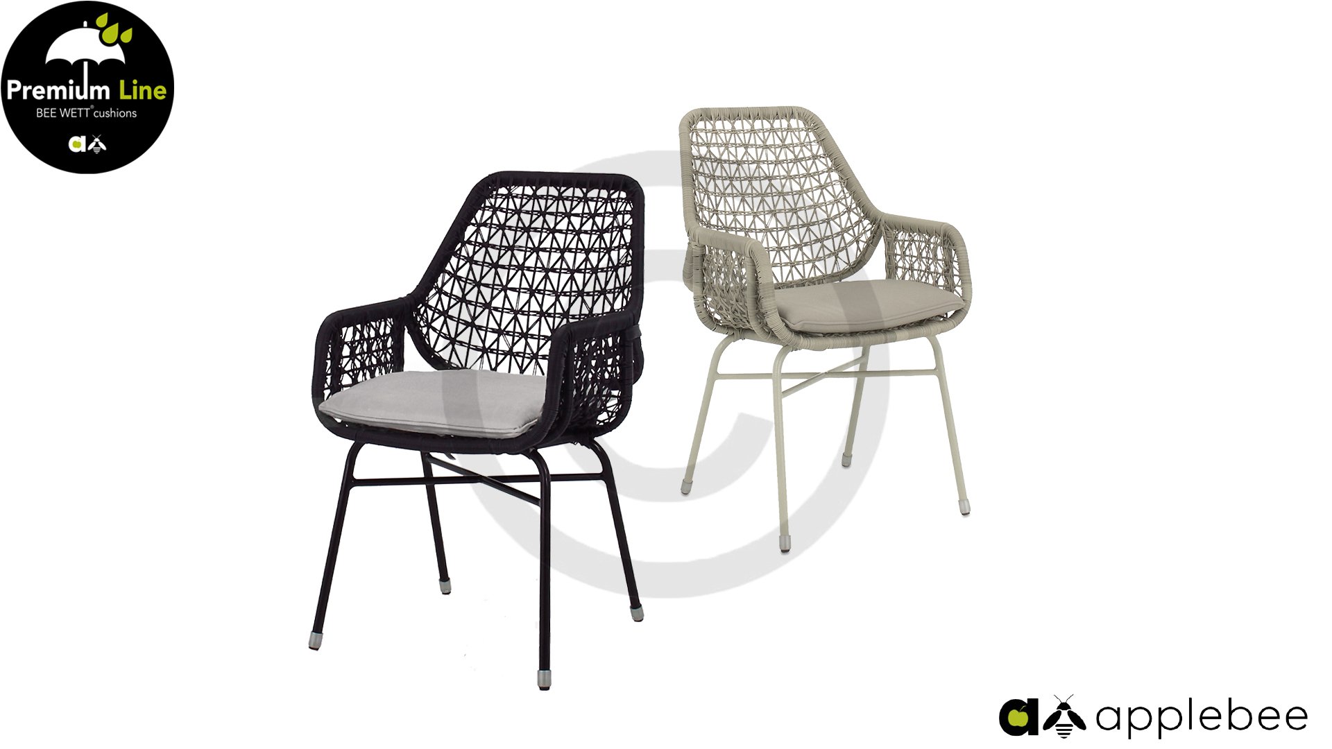 Die gewebten Fäden der Zara Esszimmerstühle sind ebenso kunstvoll geknüpft und verspielt und erzeugen so einen transparenten Effekt. Man könnte sie fast Makramee-Kunst nennen! Der Stuhl besteht aus einem Aluminiumrahmen und ist daher rostfrei. Zara ist zudem stapelbar und somit leicht zu verstauen. Die Stühle verfügen außerdem über ein abnehmbares Sitzkissen mit BEE WETT®-Technologie.