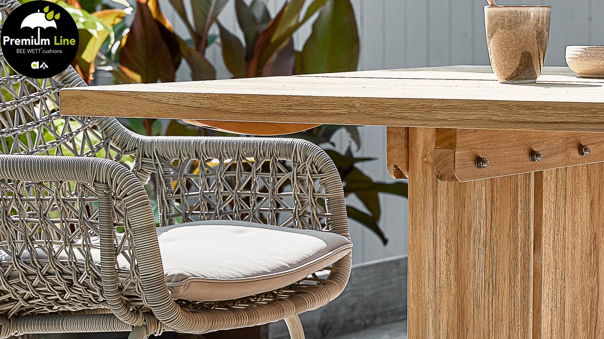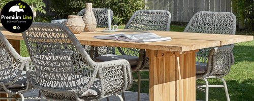 Sie können diese wunderschönen Esszimmerstühle vielseitig kombinieren, zum Beispiel mit den Tischen Joie de Vivre oder Jakarta. So gestalten Sie Ihre ganz persönliche Gartenmöbelgarnitur!
