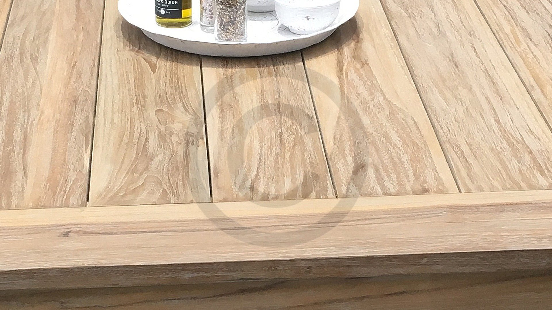 Der Applebee Del Mar Coastal Tisch besteht vollständig aus Teakholz. Sowohl die Tischplatte als auch die Beine sind aus qualitativ hochwertigem zertifiziertem Teakholz gefertigt. Ein Klassiker im Garten!