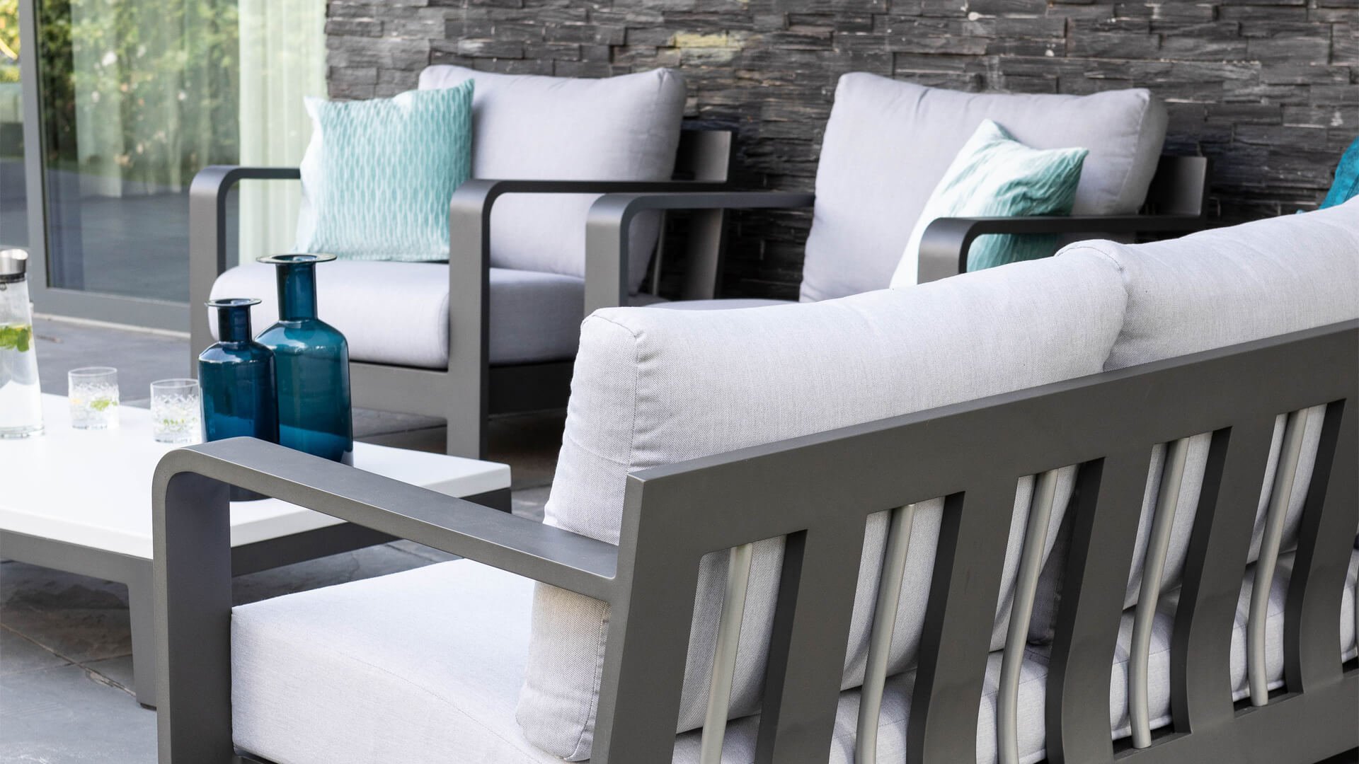 Aluminium ist sehr wartungsfreundlich und leicht. Diese praktischen Möbel sind leicht zu reinigen. Unser Aluminium mit einer festen Pulverbeschichtung ist witterungsbeständig und UV-beständig. Aluminium ist nicht rostanfällig, zeitlos und stilvoll.