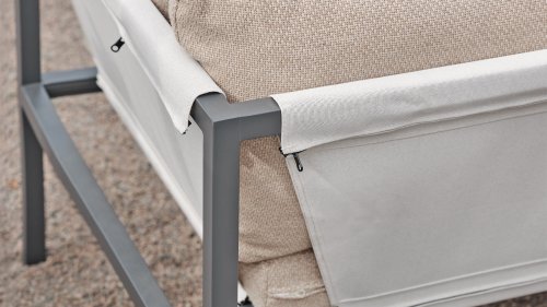 Brafab Allie Lounge: alles in einer Box! Erleben Sie die perfekte Mischung aus Einfachheit und Design-Raffinesse in jedem Element – vom Aluminiumrahmen bis zum lebendigen Textilene-Sitz. Bequeme Kissen aus modernem gerstenfarbenem Stoff. - Alles wird ordentlich verpackt in einer einzigen Box geliefert. Der Aufbau Ihrer Outdoor-Oase war noch nie so einfach, sodass Sie sich auf das Genießen Ihres Platzes und nicht auf die Einrichtung konzentrieren können. Dank seiner intelligenten Konstruktion ist es auch im Winter leicht zu verstauen.