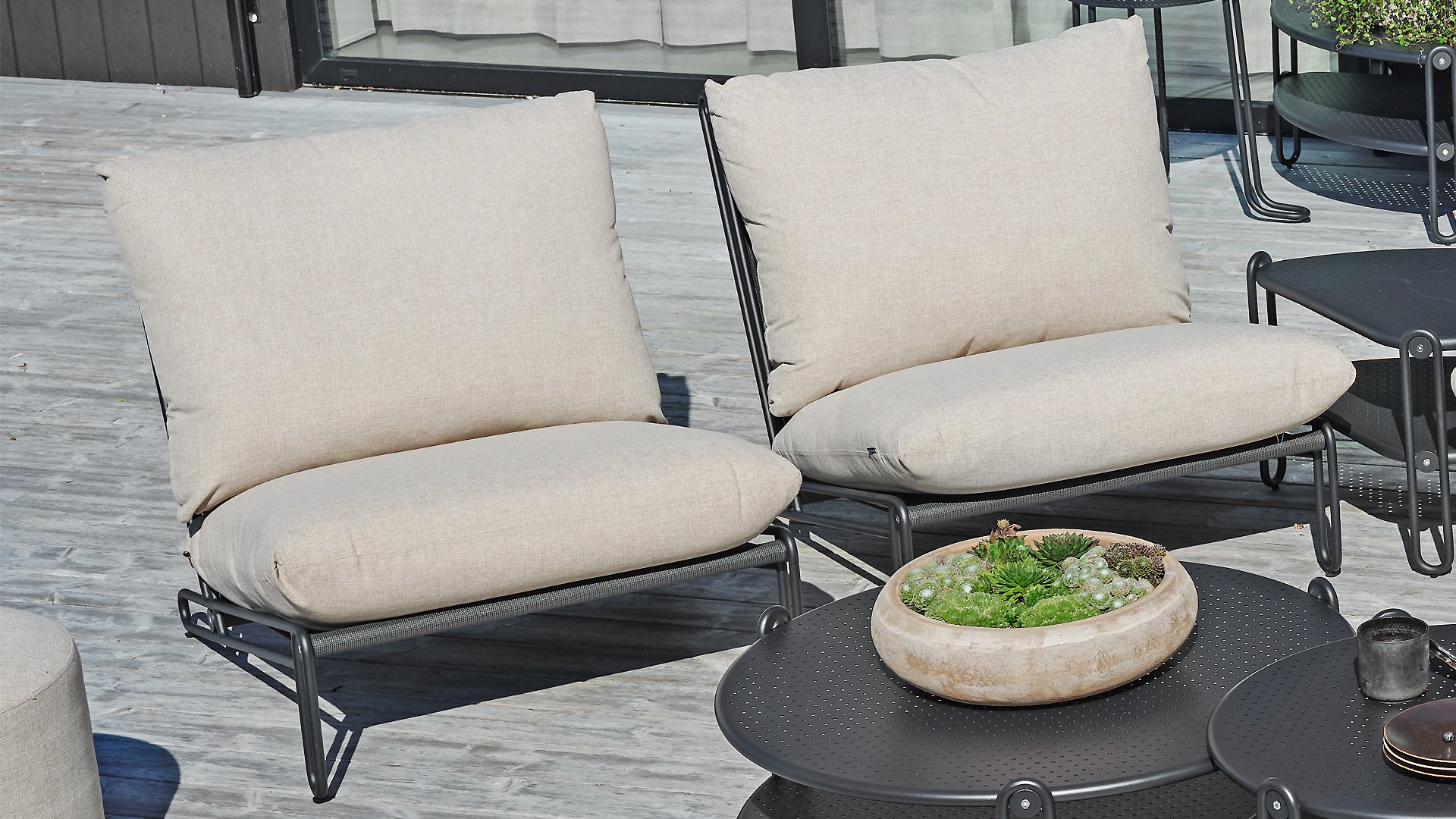 | Materialien Loungegruppe | Pulverbeschichtet Aluminium/Stahl |