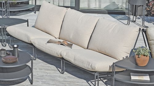 Ein bequemer Sessel, der ein Statement setzt. Die schräge Sitzfläche und der offene Aluminiumrahmen schaffen einen wunderbaren Ort zum Entspannen. Die Kissen sind in Rosa, Grau und Beige erhältlich. Als Teil der BRAFAB-Reihe von Outdoor-Möbeln ist das BRAFAB BLIXT Outdoor-Sofa ein modernes Sofa zum Zusammenbauen mit einem Aluminiumrahmen und einer Sitzfläche aus Textilene. Die bequemen Kissen bestehen aus wasserabweisendem Olefin-Gewebe. Jeder Sessel kann als freistehender Sessel verwendet oder zu einem Outdoor-Sofa verbunden werden, so lange Sie möchten!