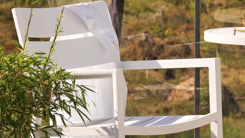 Der Sitzkomfort des Gartenstuhls ist sehr gut. Sie müssen kein Sitzkissen für Komfort verwenden, denn die Formen und die Tiefe des Sitzes sorgen dafür, dass er wunderbar sitzt! Wer lieber extra weich sitzen möchte, kann auch einfach ein Gartenkissen hineinlegen.