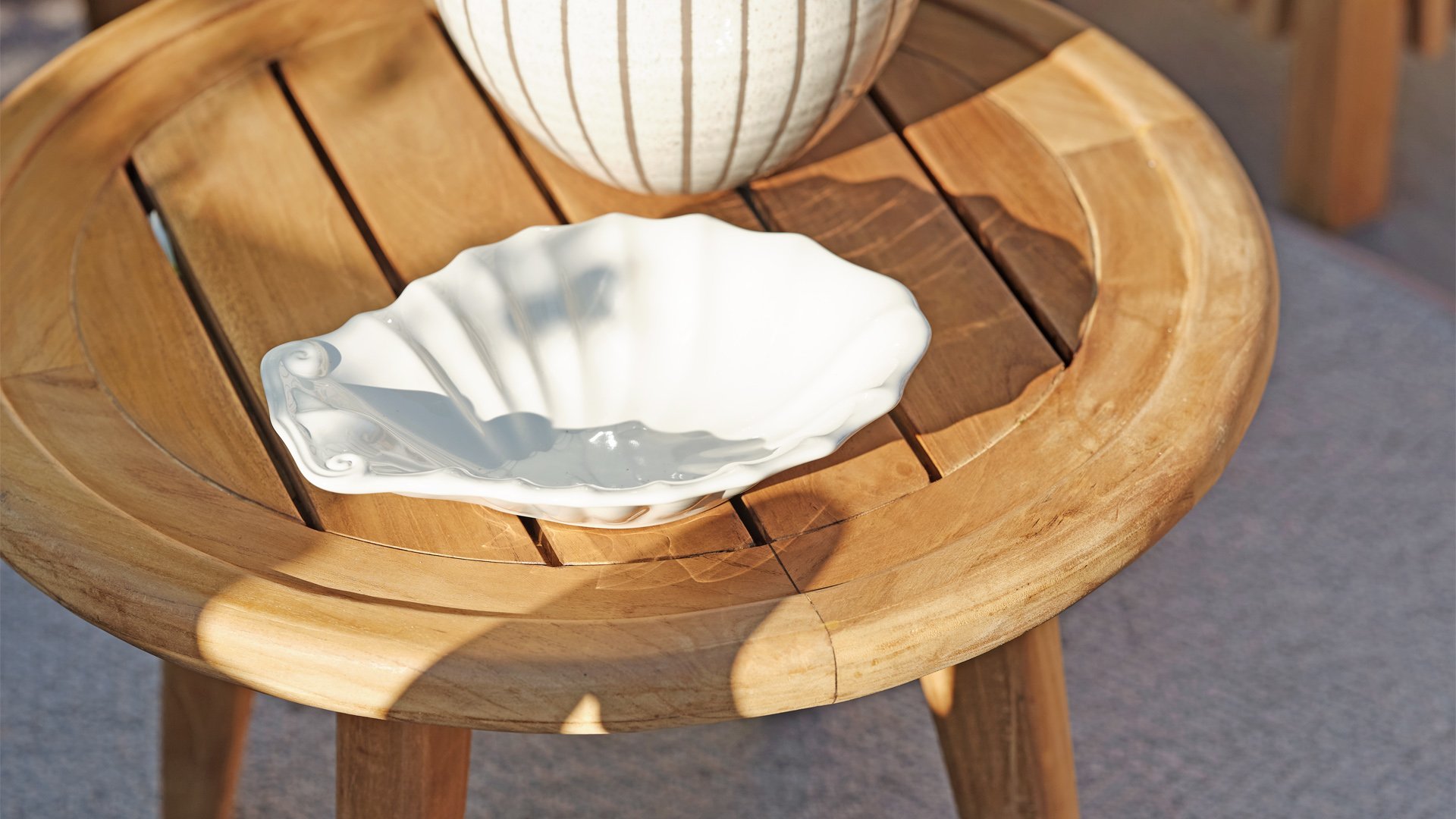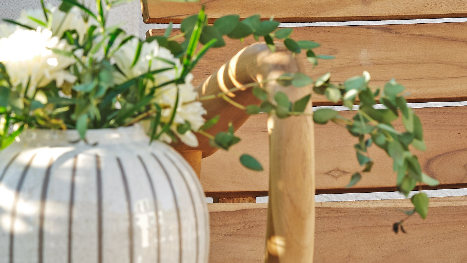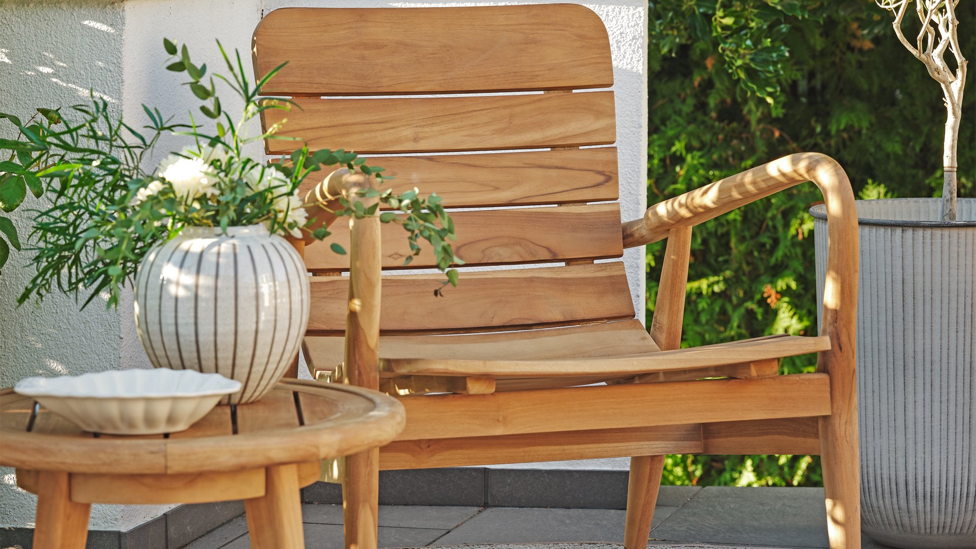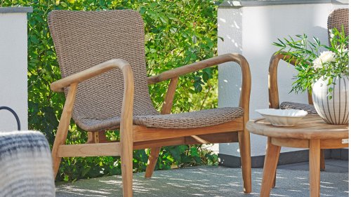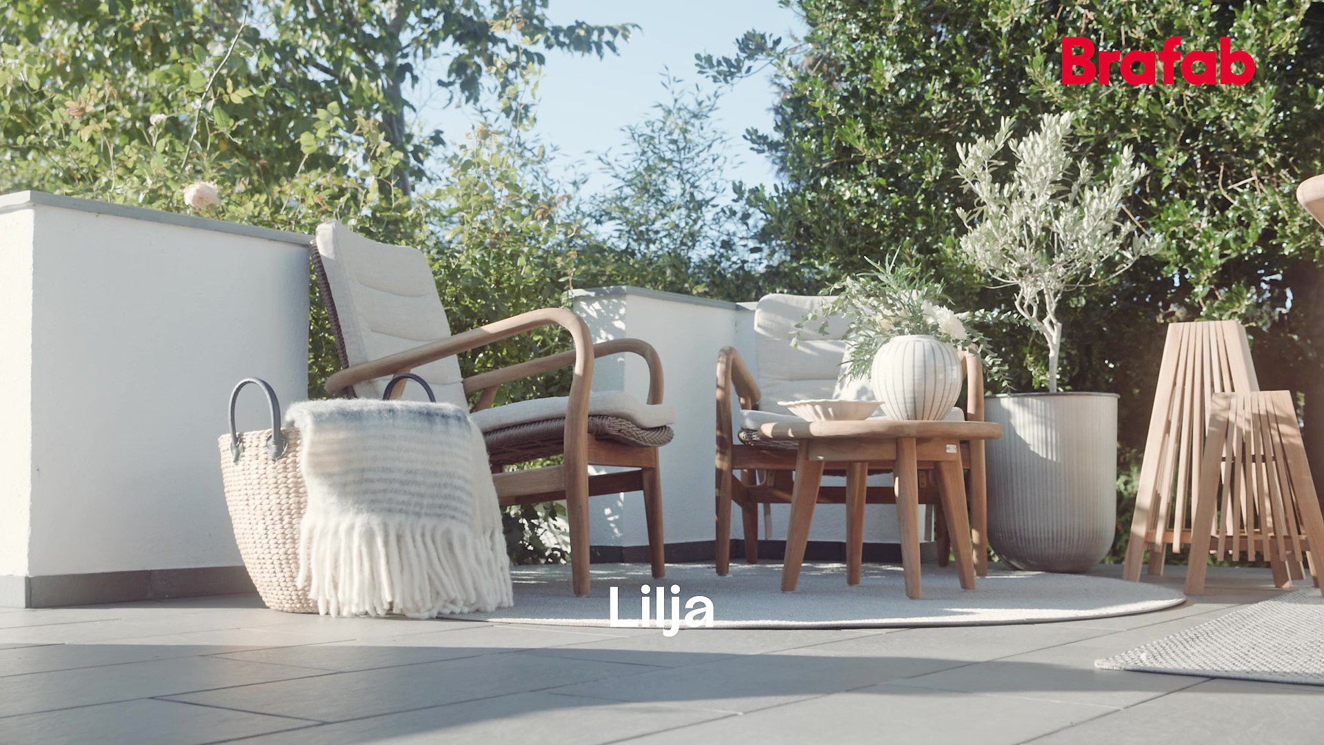 Das Brafab Lilja-Sortiment eignet sich sowohl zum Essen als auch zum Entspannen. Organische runde Formen in warmem Teakholz. Robuste Elemente, die durch die abgerundeten Details dennoch Eleganz ausstrahlen.