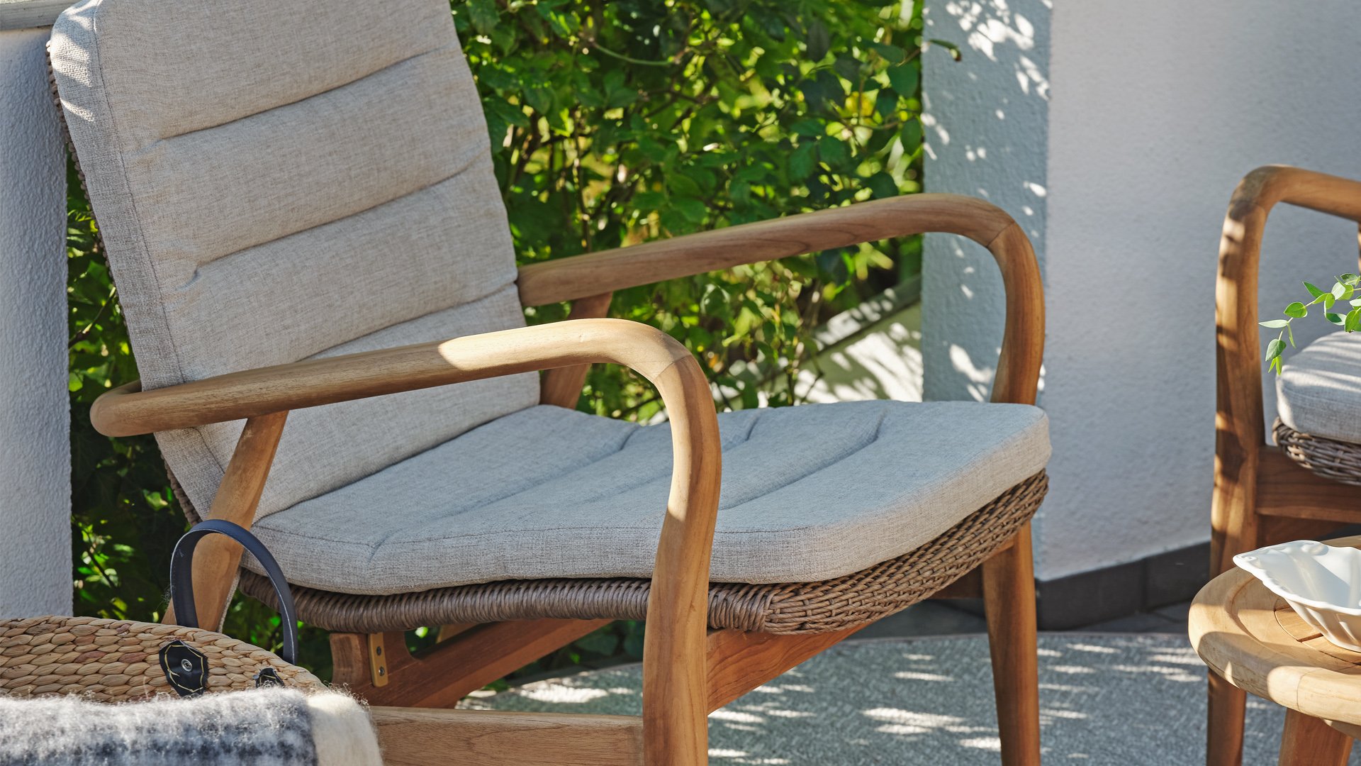 Der Lilja Lounge Chair von Brafab ist ein echter Sessel zum Zurücklehnen und Entspannen. Schön abgerundete Ecken für optimalen Sitzkomfort. Die schöne Armlehne in Teak fällt ins Auge. Der Sitz-Rückenbereich ist aus stilvollen breiten Teakholzlatten oder Nature Fabre Kunststoff Wicker Geflecht.
