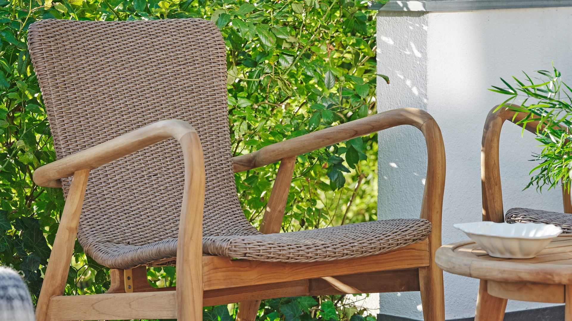 | Materialien Lounge-Sessel | Teak, Geflecht |