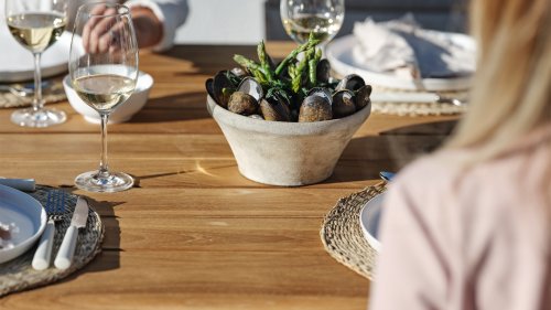 Die Brafab Lilja-Reihe ist sowohl für Mahlzeiten als auch zur Entspannung geeignet. Organische runde Formen in Teak. Robuste Elemente, die dennoch durch abgerundete Details Eleganz ausstrahlen. Brafab weiß, dass das schwedische Klima mit Regen und Sonne allerlei Wetterbedingungen bieten kann, daher steht Nachhaltigkeit immer im Mittelpunkt, wenn ein neues Gartenmöbelstück produziert wird. Erhältlich in den Größen 120cm und 165cm.