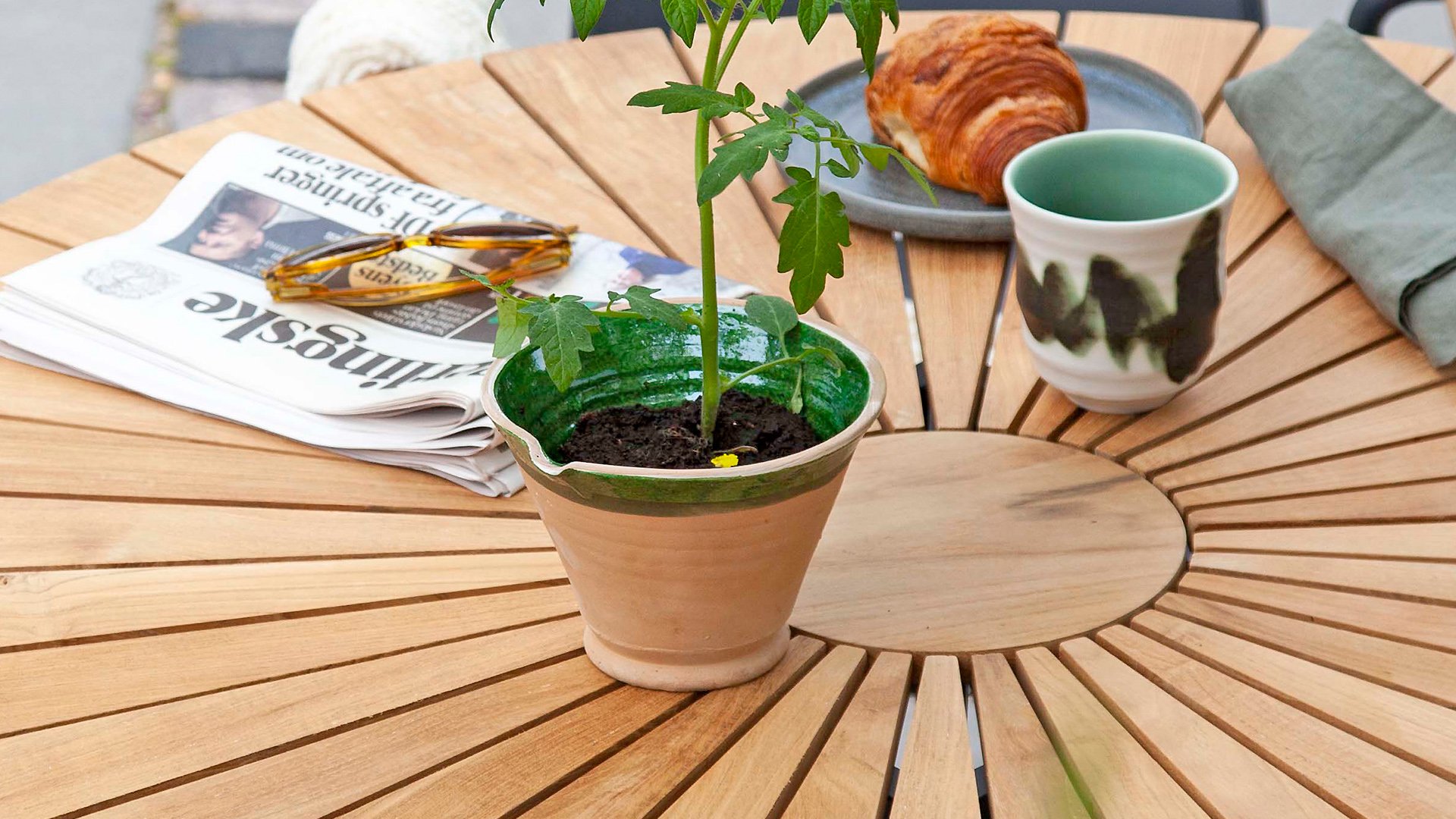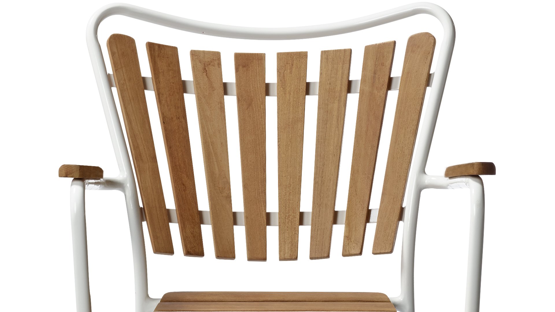 Sowohl die Ellen-Tische als auch die Ellen-Stühle von CINAS sind mit anthrazitfarbenem oder weißem pulverbeschichtetem Aluminiumrahmen erhältlich. Das warme Teakholz in Kombination mit den anthrazitfarbenen oder weißen Rahmen ist eine sehr schöne Kombination.