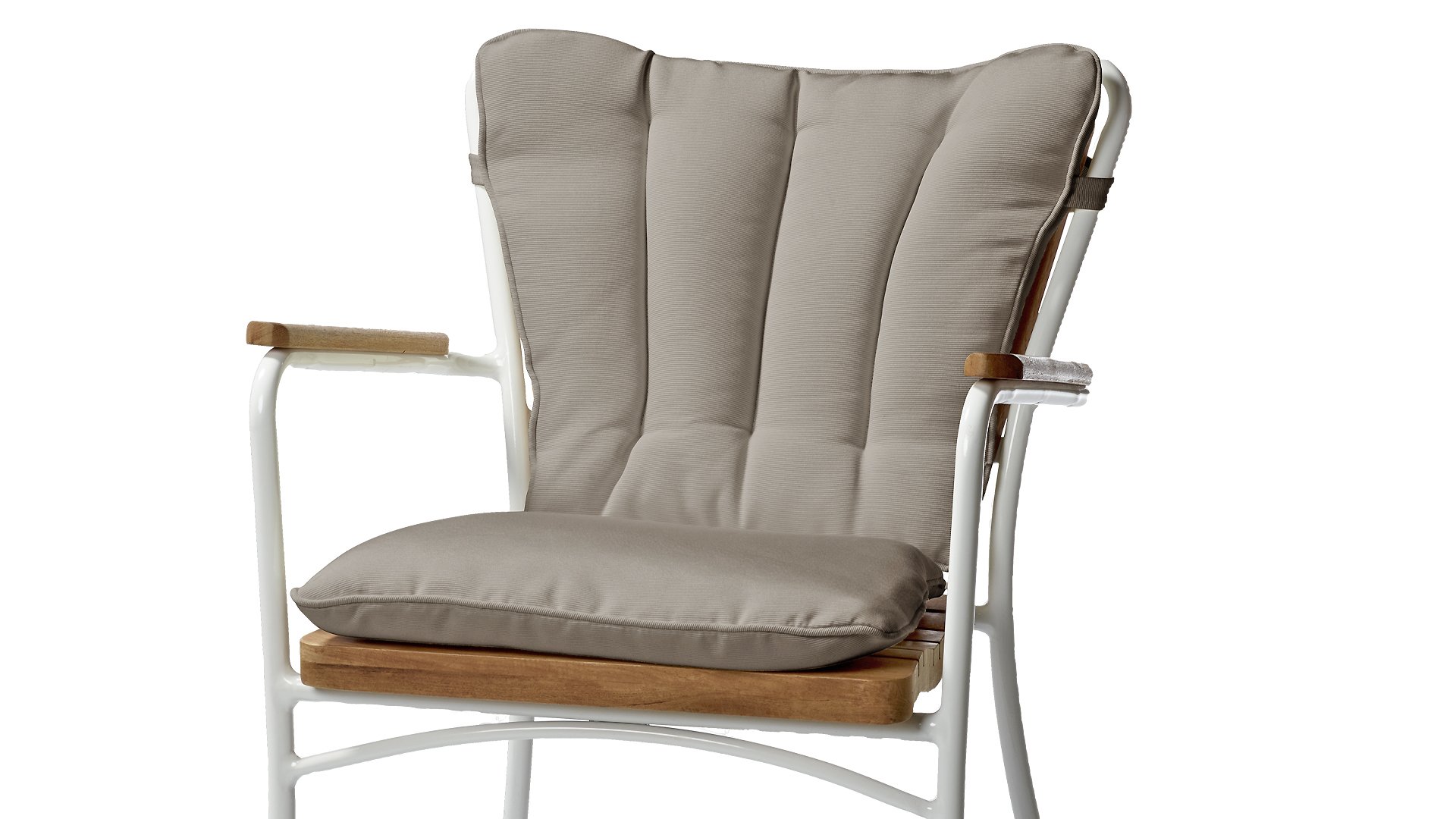 Dieser moderne Klassiker weckt Erinnerungen an die Sommerferien, wo sicherlich der Kaffee und die täglichen Mahlzeiten in entspannter Umgebung genossen wurden. Die Kissensind separat erhältlich.