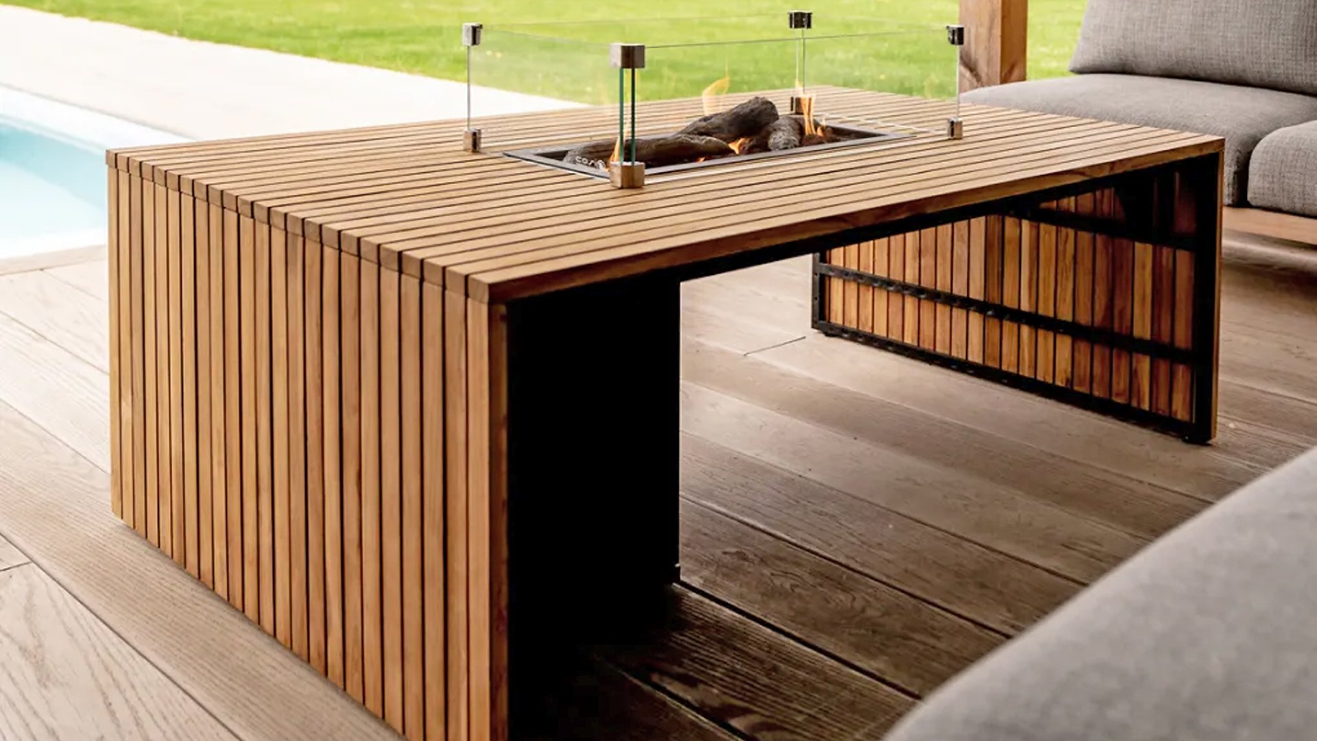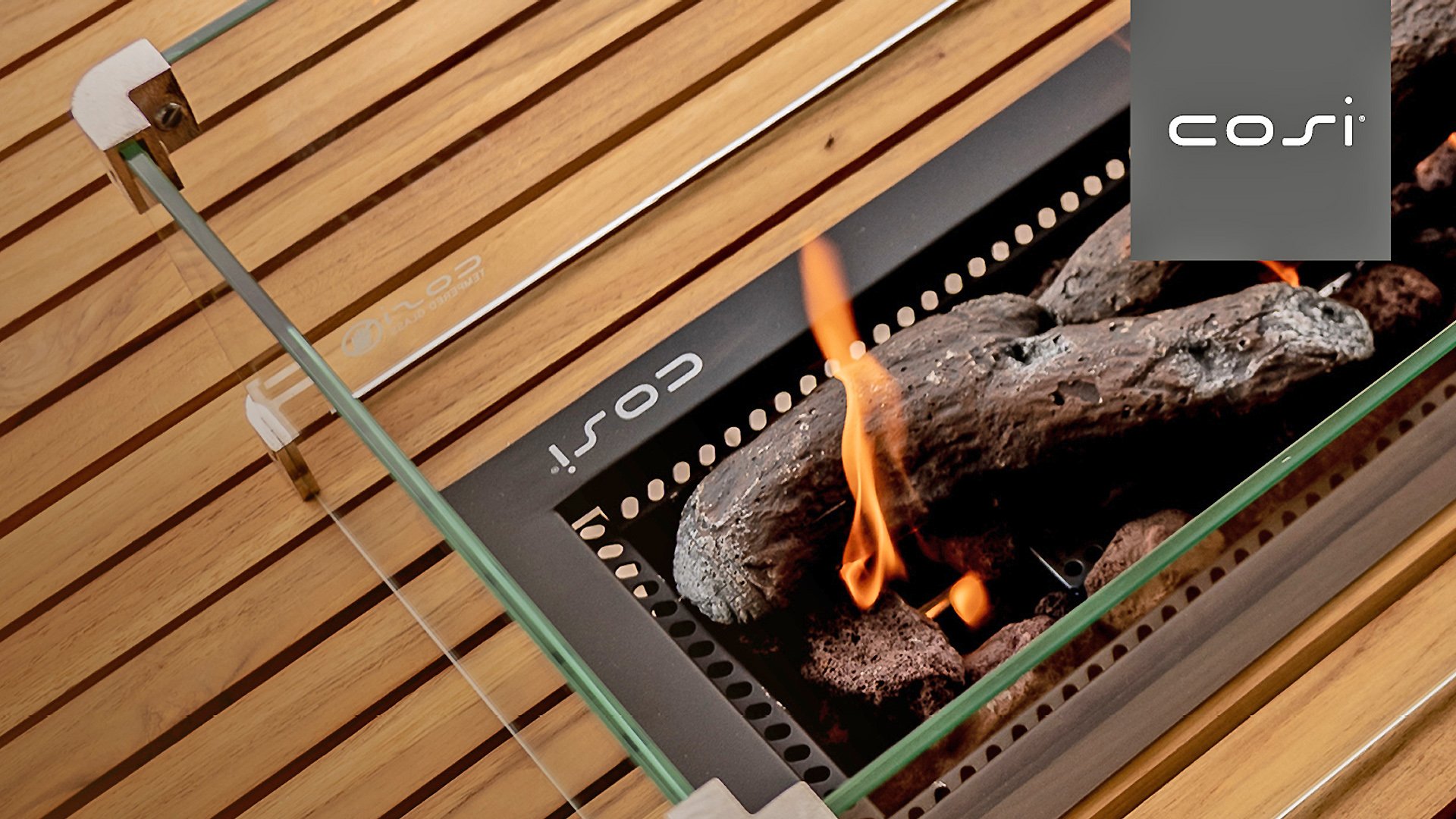 CosiBridge FeuertischTeak + Glasset