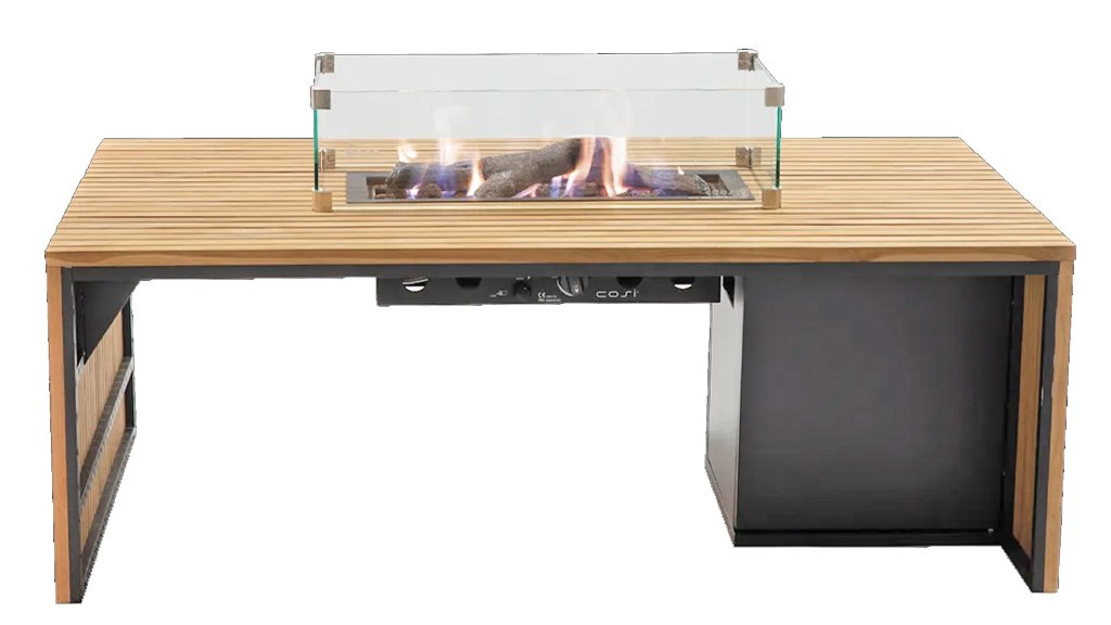 Die Cosibridge ist ein echter Hingucker, der perfekt zu den neuesten Outdoor-Trends passt. Die Kombination von Teakholz mit Aluminium macht den Cosibridge Feuertisch wartungsfreundlich und zu einer nachhaltigen Wahl.