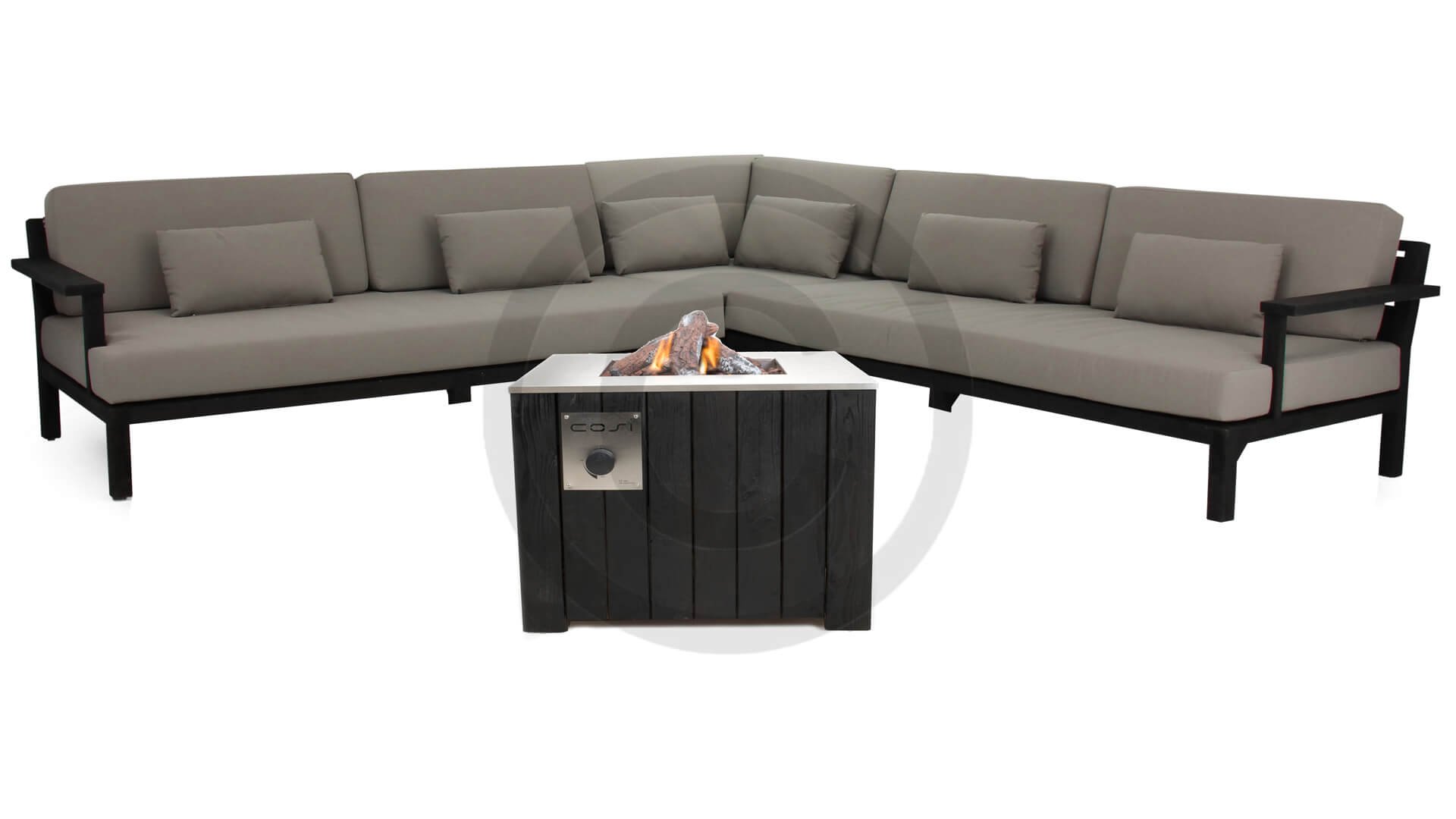 Der Cosicube ist eine wunderbare Ergänzung zu Ihrem Lounge-Set. Der Tisch ist mit einem eingebauten Gaskamin versehen. Aber keine Sorge, Sie werden von Rauch oder Funken nicht belästigt. Der Cosi Cube ist zu hundert Prozent sicher. Der Tisch ist nämlich mit einem Edelstahlbrenner ausgestattet, der durch die mitgelieferten Holzscheite und Lavasteine verdeckt wird. Dadurch ähnelt der Cosi Cube einem mit echtem Holz befeuerten Kamin und sorgt - buchstäblich - für die warme, gemütliche Atmosphäre, die Sie sich wünschen. Und aufgrund der Edelstahltischplatte ist es ein echter Tisch, der ferner aus Douglasienholz mit Grauschleier hergestellt ist. Das Anzünden ist ganz einfach, der Tisch ist mit einer elektronischen Zündung ausgestattet. Der Cosi Cube wird über eine Gasflasche betreiben, die aber auch nicht sichtbar ist. So bleibt der Cosi Cube stilvoll.