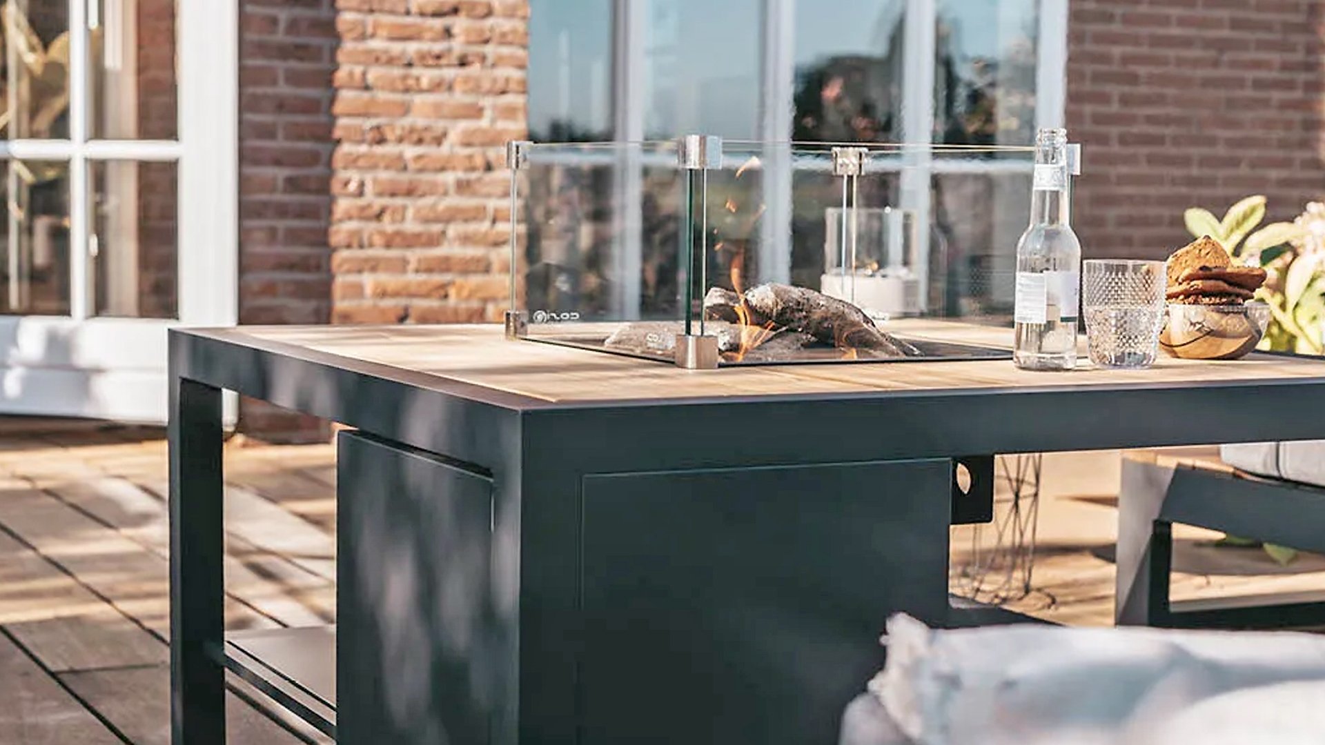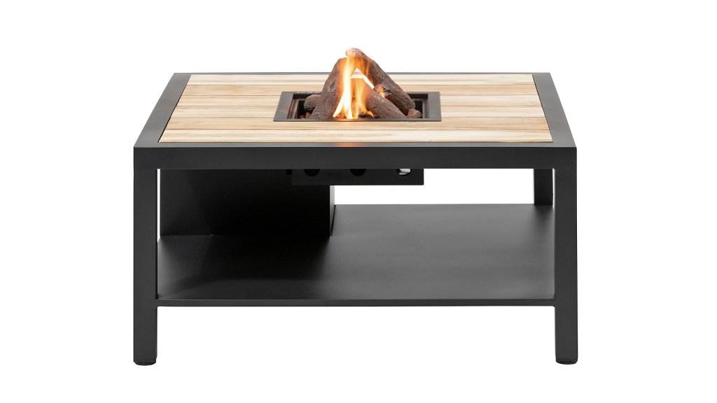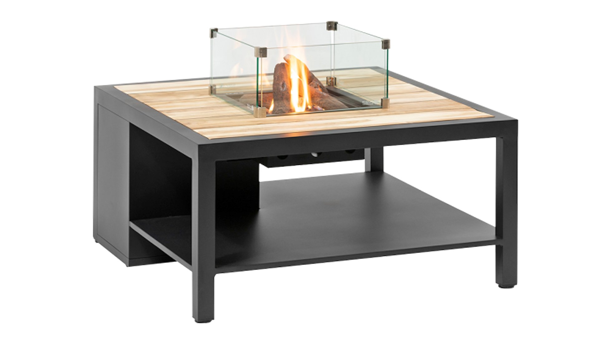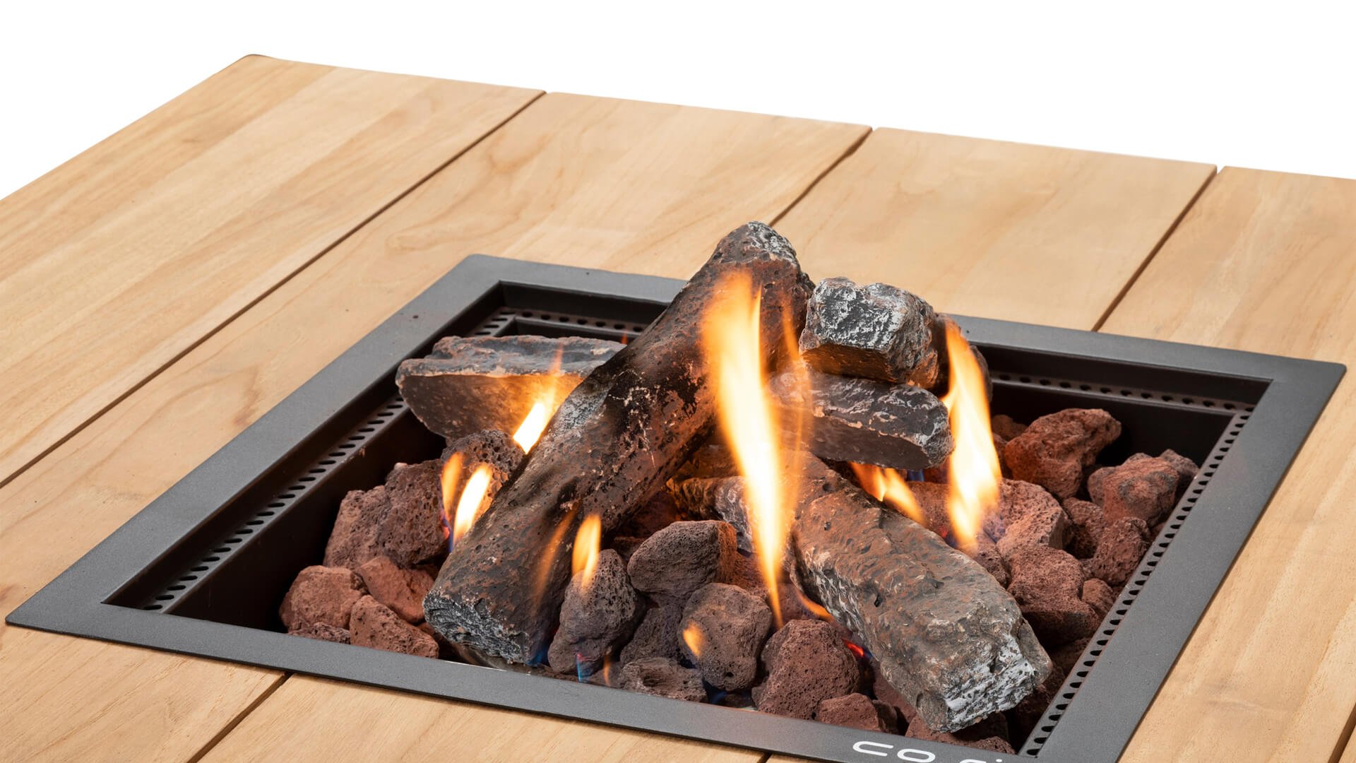 Die Cosiflow-Serie zeichnet sich durch ihre Einfachheit aus. Der Cosiflow besteht vollständig aus Aluminium, so dass Sie keinen Wartungsaufwand für diesen Tisch haben. Darüber hinaus passt dieser Tisch aufgrund seines klaren Designs zu jedem Gartenset. Egal, ob Sie sich für Teakholz, Polster oder Kunststoff entscheiden, der Cosiflow passt immer. Unter dem Cosiflow-Tisch befindet sich eine zusätzliche Platte zum Abstellen von Gegenständen. Der Cosiflow-Feuertisch wird einsatzbereit geliefert. Dies bedeutet, dass bereits ein Druckregler mit Gasschlauch, Batterie für die Zündung, keramische Holzscheite und Lavasteine mitgeliefert werden.