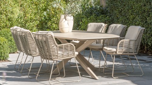 Auf der Suche nach einem schönen Gartenset? Genießen Sie nach einem anstrengenden Arbeitstag ein leckeres Essen im Freien oder genießen Sie einen langen Abend mit Familie oder Freunden. Mit einem Dining-Set ist alles möglich. Die Materialien unserer Gartensets sind so konzipiert, dass sie den Elementen standhalten. Entscheiden Sie sich für warmes Teakholz, schlichtes Aluminium, anmutiges Rope von 4 Seasons Outdoor, zeitloses Geflecht oder eine Materialkombination wie Applebee? Neu und Planet Proof sind die Modelle aus recyceltem Kunststoff der dänischen Marke HOUE! Kombinieren Sie nach Herzenslust mit dem Tisch Ihrer Wahl. Wenn Sie eine andere Kombination als abgebildet wünschen, können Sie die Schaltfläche Eigene erstellen verwenden. Zögern Sie nicht, uns bezüglich der Möglichkeiten zu kontaktieren! !. Wir werden unser Bestes tun, um Sie bestmöglich zu beraten.