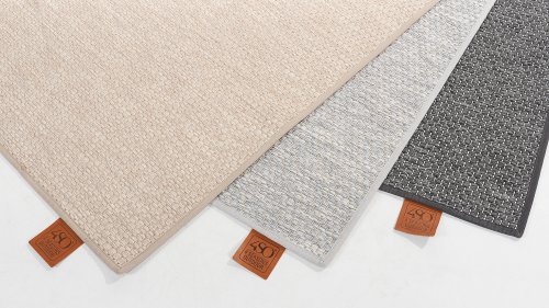Die Teppiche bestehen zu 100 % aus Polypropylen. Polypropylenfasern haben eine grobe Struktur und sind das ideale Material für Gegenstände, auf denen Menschen häufig laufen. Sie sind langlebig und farbecht und es fühlt sich auch wunderbar an, wenn man barfuß auf dem Teppich läuft.