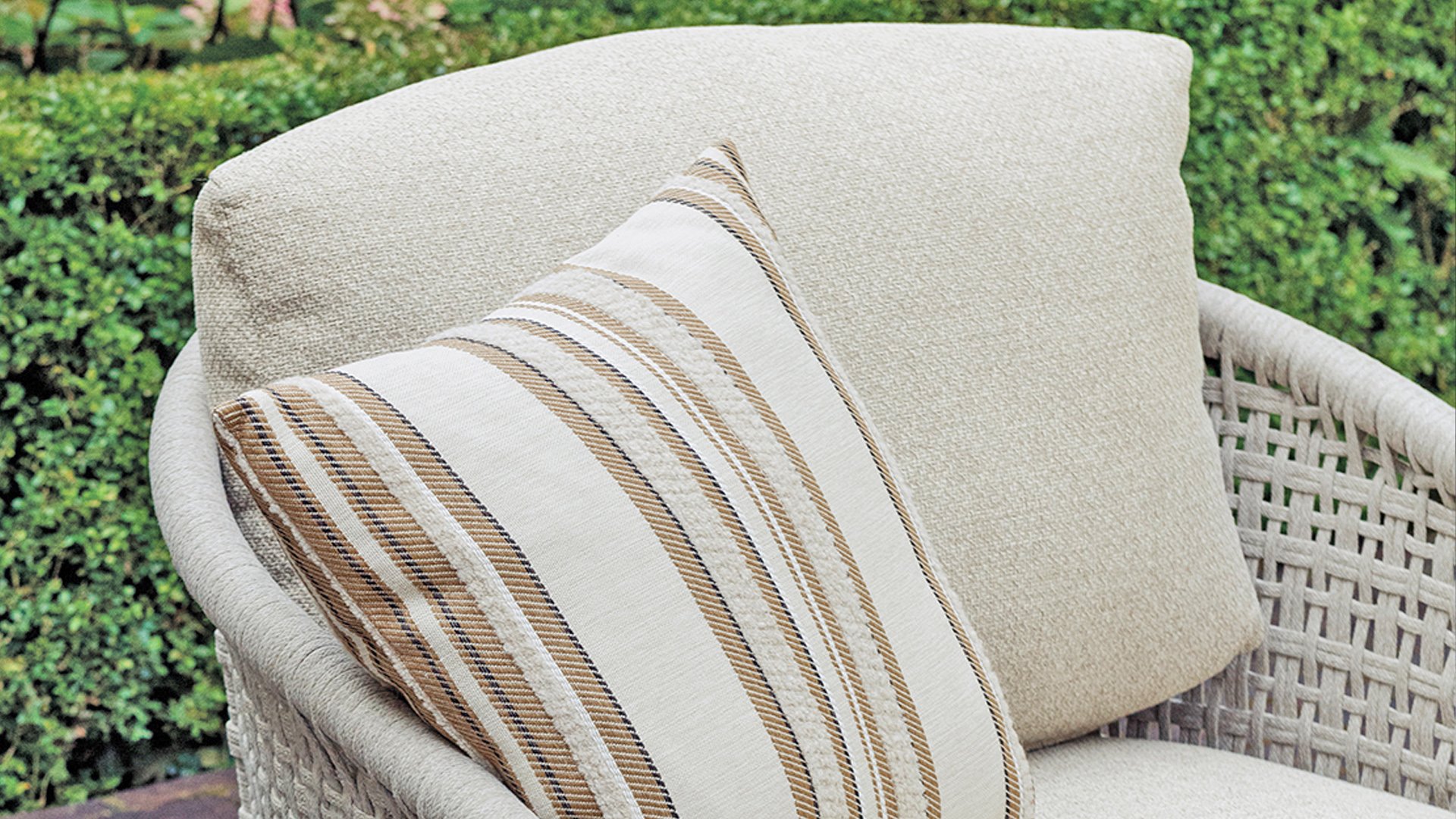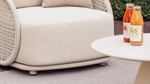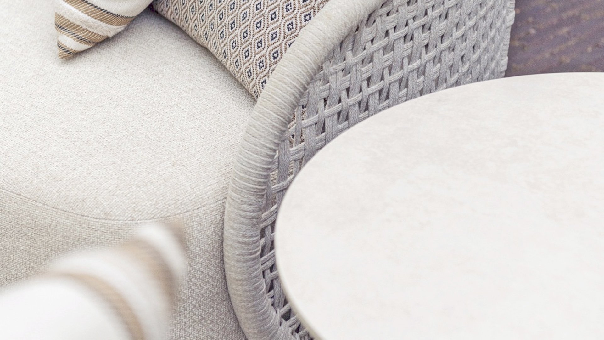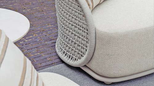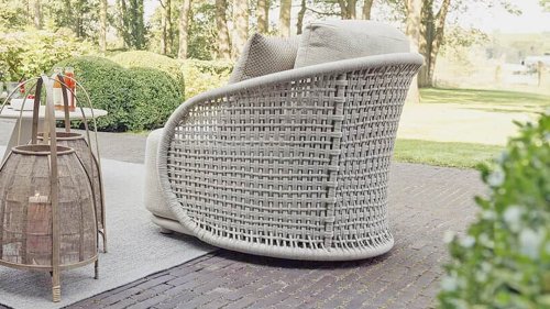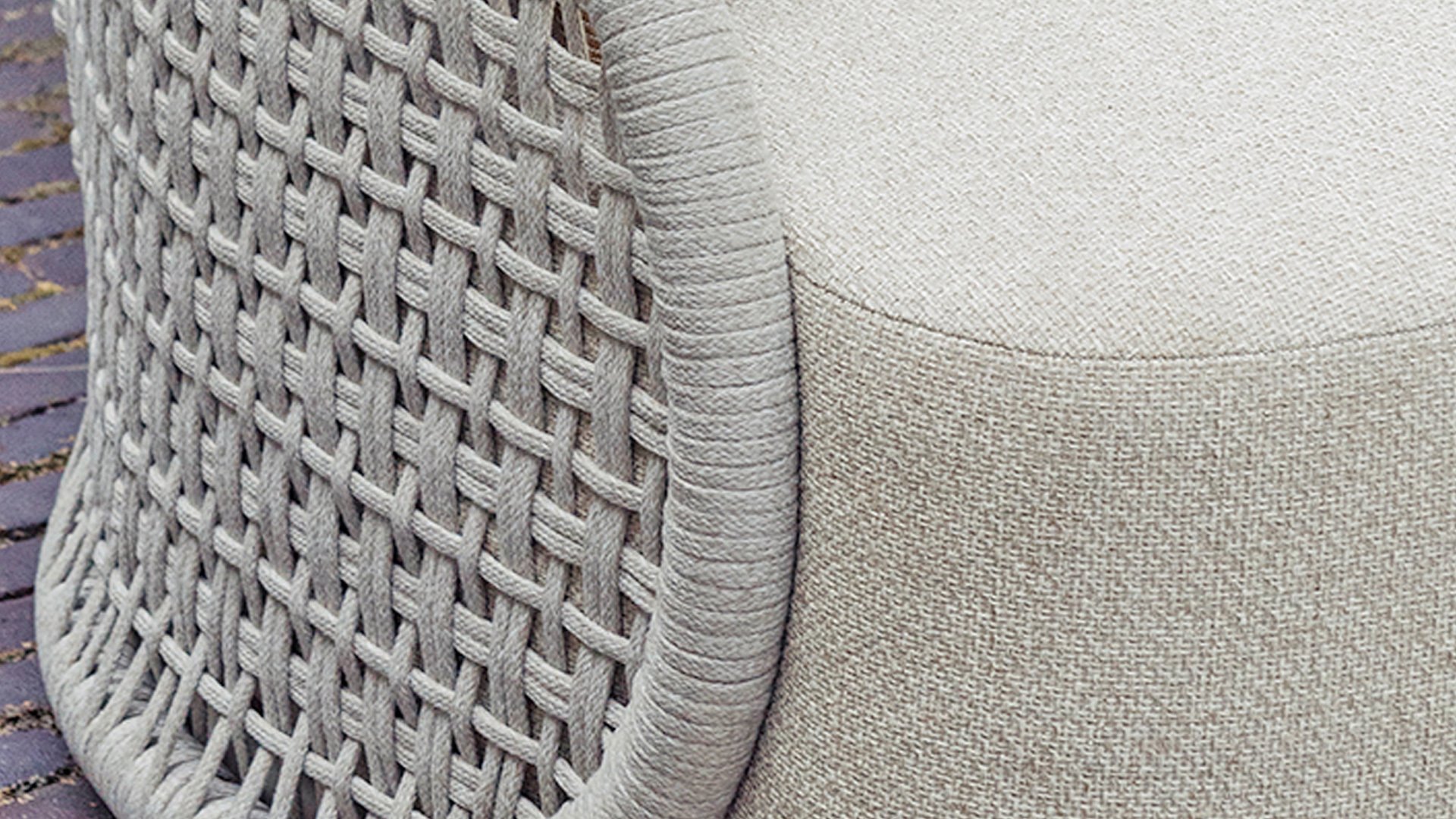- Erhältlich in stilvollen Farben: Die Kombination aus dem warmen, leinenfarbenen Gestell und dem eleganten, hellgrauen, handgewebten Seil schafft einen modernen und gleichzeitig behaglichen Look, der in jeden Garten passt.